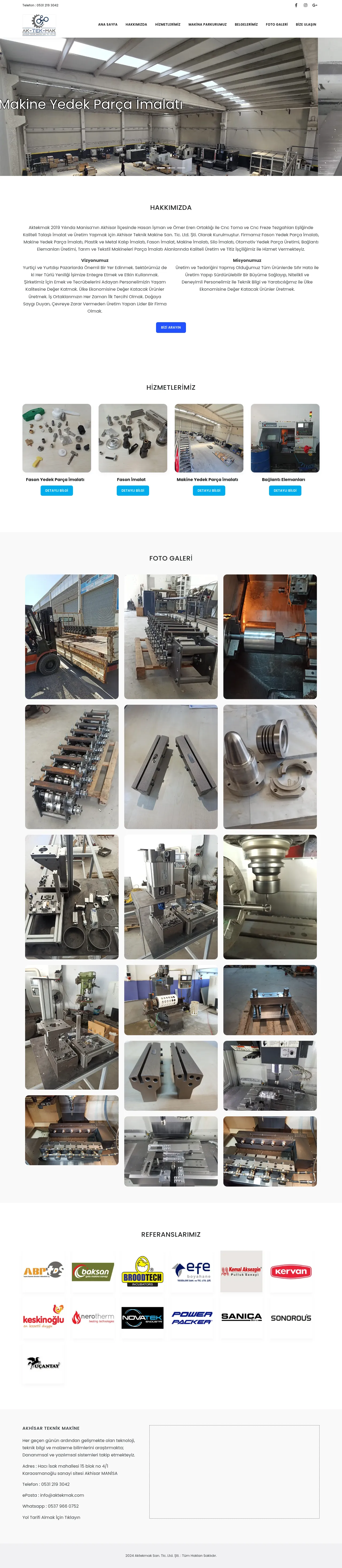 Akhisar Teknik Makine is a precision manufacturing company established in 2019 in Akhisar, Manisa. The firm specializes in high-quality chip machining, utilizing CNC turning and milling technologies to produce components for various industrial sectors. Their service portfolio includes custom spare part manufacturing, plastic and metal mold production, and the fabrication of silo and agricultural machinery parts. Committed to a zero-error production policy, the company integrates modern manufacturing techniques and software to ensure sustainable growth. They serve a diverse range of industries including automotive, textiles, and agriculture while focusing on high-precision output and technical craftsmanship.