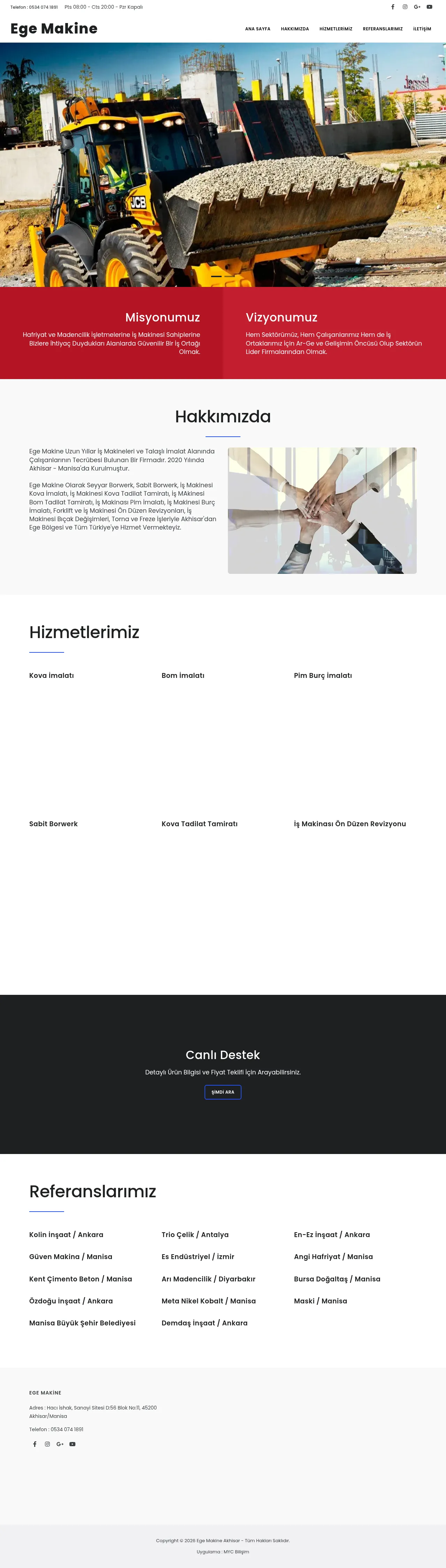 Established in 2020 and based in Akhisar, Manisa, Ege Makine provides specialized manufacturing and repair services for heavy construction equipment. The company serves the mining, excavation, and industrial sectors throughout Turkey with a focus on high-quality metal processing and machinery maintenance. Their core capabilities include precision machining, component manufacturing, and structural repairs for earthmoving attachments. By combining technical expertise with reliable service, Ege Makine supports the operational longevity of heavy machinery for regional and national partners. The facility is equipped to handle complex projects involving lathe work, milling, and specialized maintenance for industrial equipment fleets.