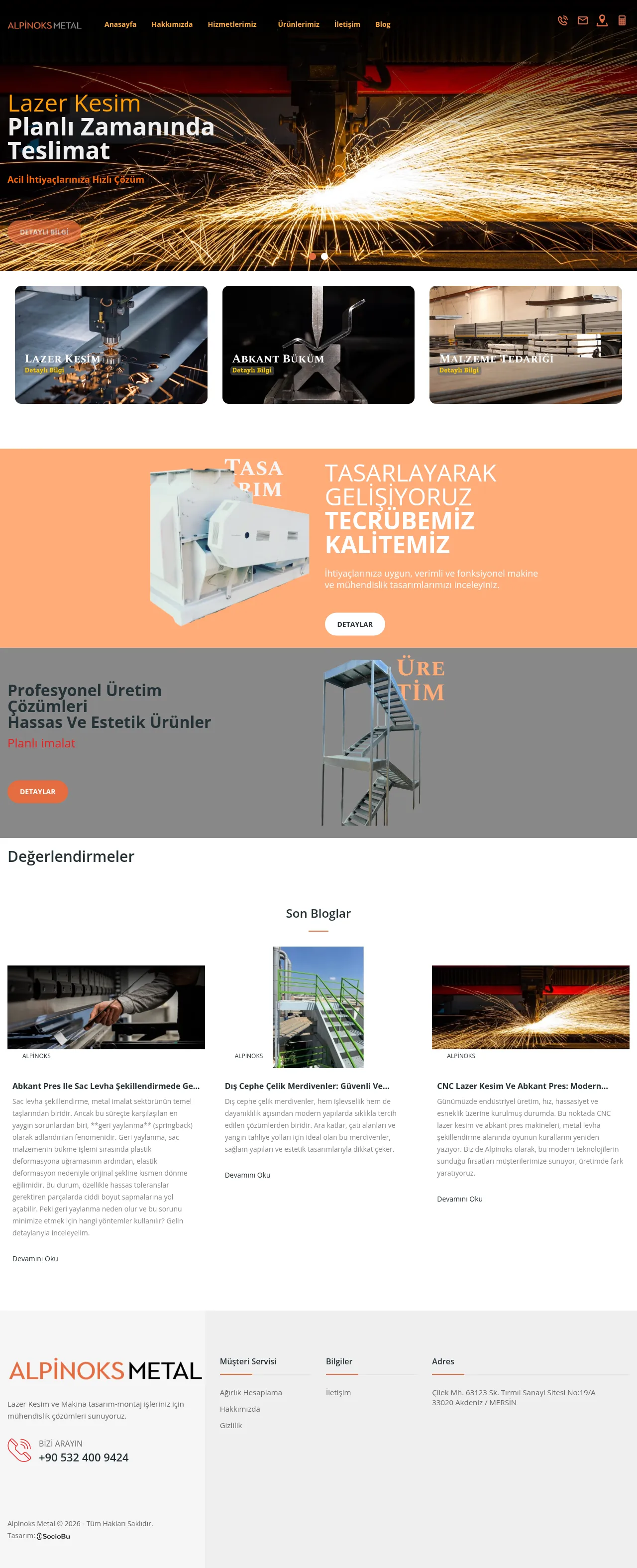 Alpinoks is a metal fabrication company specializing in sheet metal forming, CNC laser cutting and press brake bending for prototype and serial production. The company supplies stainless and carbon steel plate and manufactures components for applications such as elevator cabins, industrial equipment and exterior steel staircases. It also provides engineering services for machine design and assembly, with integrated cutting, bending and finishing solutions.