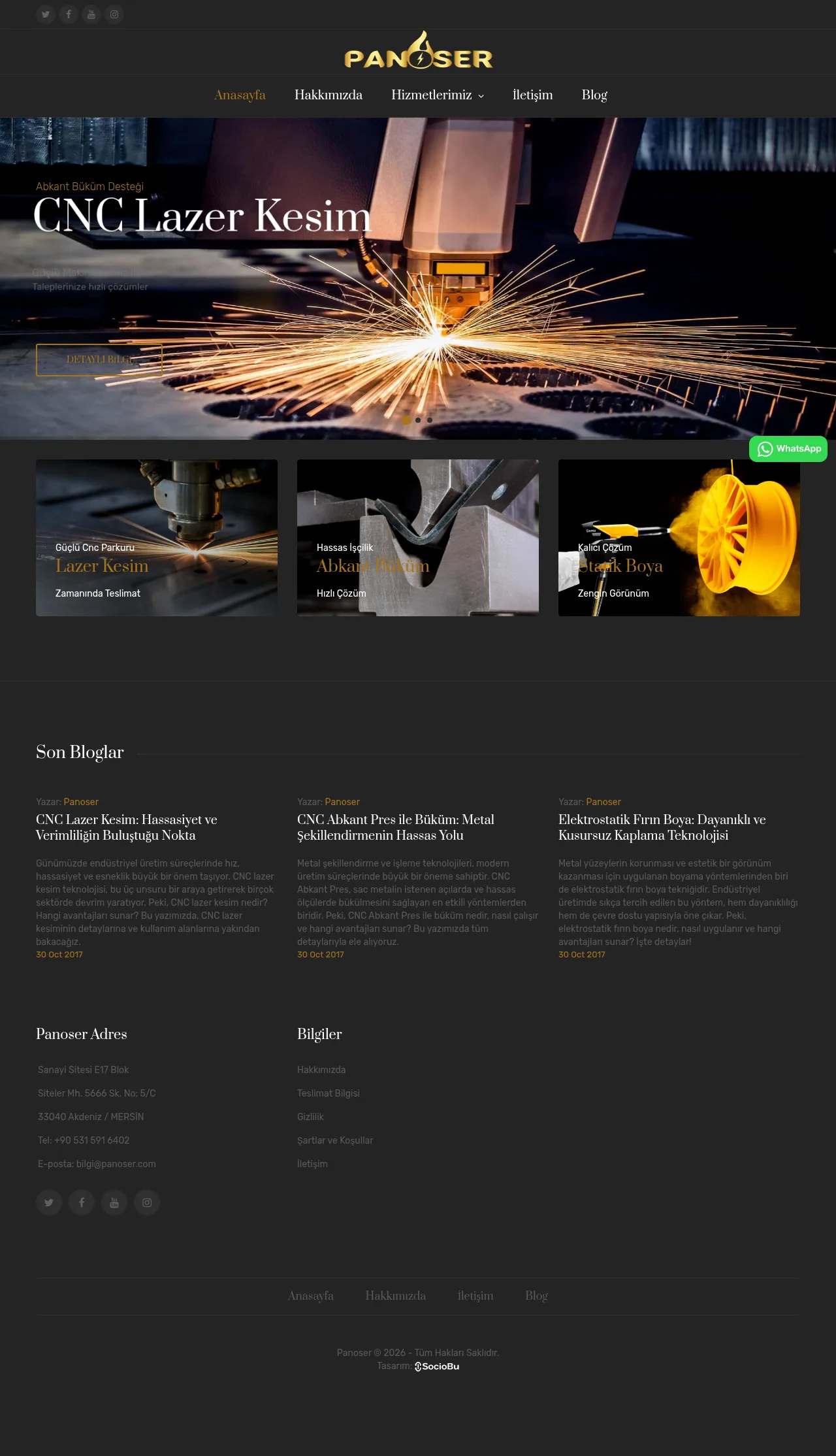 Panoser is a metal fabrication company based in Mersin, Turkey, specializing in CNC laser cutting, press brake bending and electrostatic oven painting. The company offers precision sheet-metal workmanship with bending capability up to 10 mm. Panoser emphasizes timely delivery and solutions for customers requiring aesthetic, durable metal components.