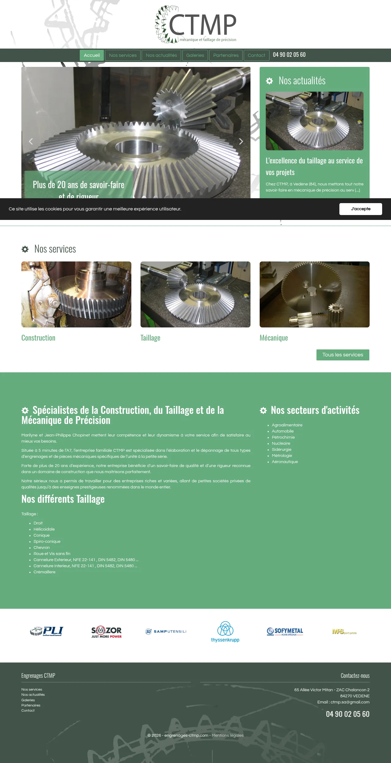 Engrenages CTMP is a family-owned manufacturer based in Vedène, France, specializing in precision mechanical engineering and gear production. With over 20 years of experience, the company serves a diverse client base ranging from private firms to international organizations across industries such as aerospace, automotive, nuclear, and food processing. Their technical expertise includes the production and repair of custom mechanical parts and various gear configurations for single units or small batch series. The facility is located near the A7 highway and is managed by Marilyne and Jean-Philippe Chopinet. They provide high-precision solutions through a rigorous construction and machining process.