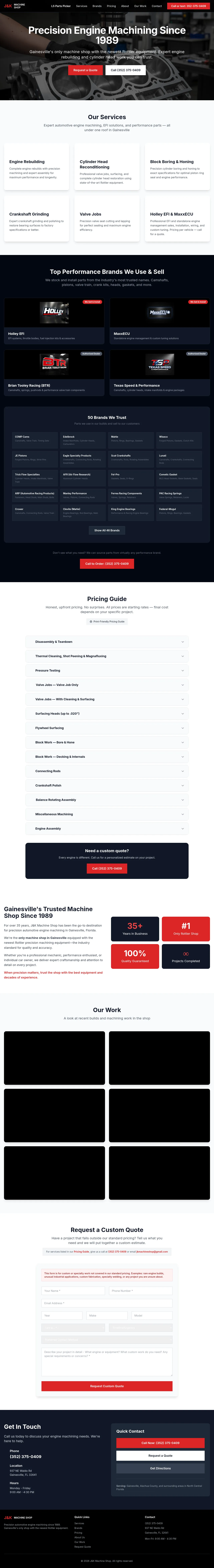 JK Machine Shop is a Gainesville-based facility specializing in precision automotive engine machining and rebuilding services. Since 1989, the company has provided expert technical support for performance enthusiasts, professional mechanics, and industrial clients. Their core capabilities include cylinder head reconditioning, crankshaft grinding, engine assembly, and custom EFI tuning solutions. The shop utilizes advanced Rottler machining equipment to ensure high accuracy and quality across all builds. They also maintain an extensive inventory of performance parts from leading industry brands to support a wide range of automotive and industrial applications.