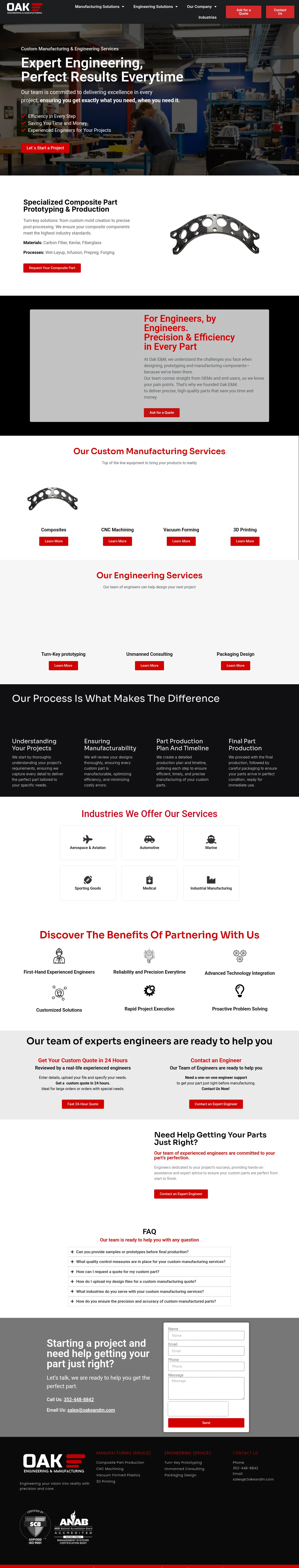 Oake and M provides end-to-end custom manufacturing services, ranging from engineering design and prototyping to full-scale production. The company serves diverse sectors, including the automotive, aerospace, aviation, marine, medical, consumer electronics, and industrial equipment industries. Core capabilities include CNC machining, 3D printing, composite part production, and vacuum forming. Oake and M differentiates itself through rigorous quality control processes, such as functional testing and material verification, alongside comprehensive support from experienced engineers. Clients benefit from rapid project execution, proactive problem-solving, and a structured prototyping process that leads from initial first-article inspection to low-rate and full-rate production.