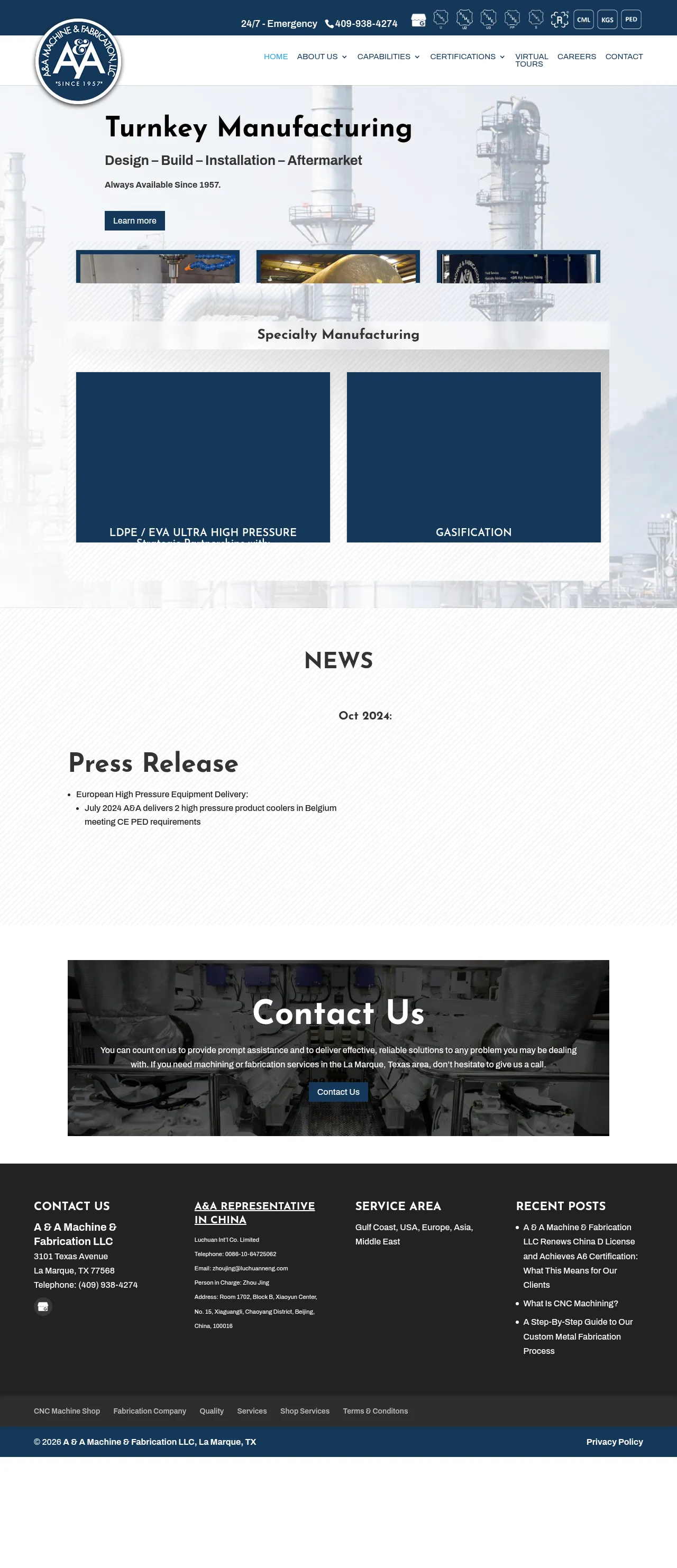 AA Group provides comprehensive design, build, and installation services specializing in precision machining, specialty welding, and custom metal fabrication. The company serves global industrial sectors, including gasification, syngas, and high-pressure chemical processing industries. With over 65 years of experience, they maintain expertise in ASME-coded pressure vessels, piping systems, and ultra-high-pressure tubing. The firm offers 24/7 emergency support, repair, and field maintenance services to minimize operational downtime for factories and plants worldwide. They utilize rigorous testing methodologies, including non-destructive examination, to ensure the integrity and safety of all manufactured and repaired components.