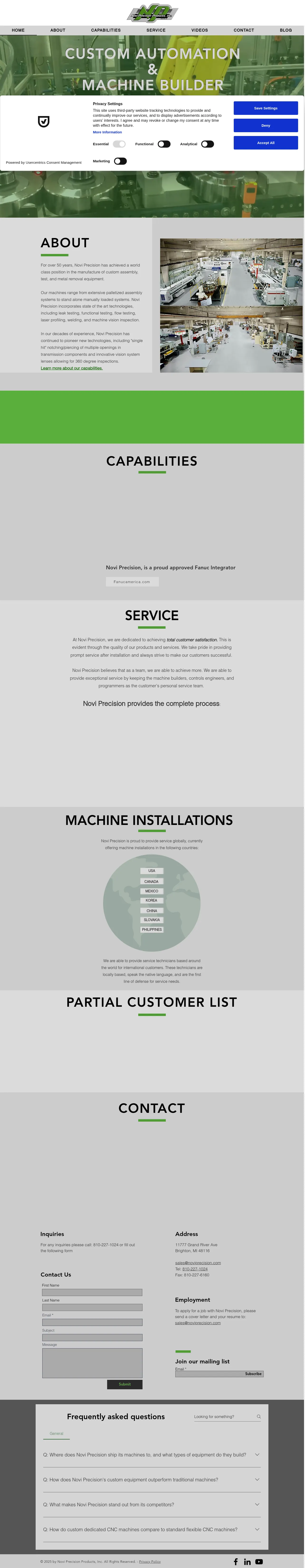 Novi Precision specializes in the design and manufacture of custom automated assembly, testing, and material removal equipment. Serving industries such as automotive, aerospace, and electronics, the company provides comprehensive solutions ranging from stand-alone manual systems to complex palletized assembly lines. Their technical expertise includes leak and functional testing, machine vision inspection, and advanced laser welding processes. With a global service reach, Novi Precision delivers integrated manufacturing solutions tailored to optimize production efficiency and quality. The company is noted for its ability to automate previously un-automated processes through innovative engineering.