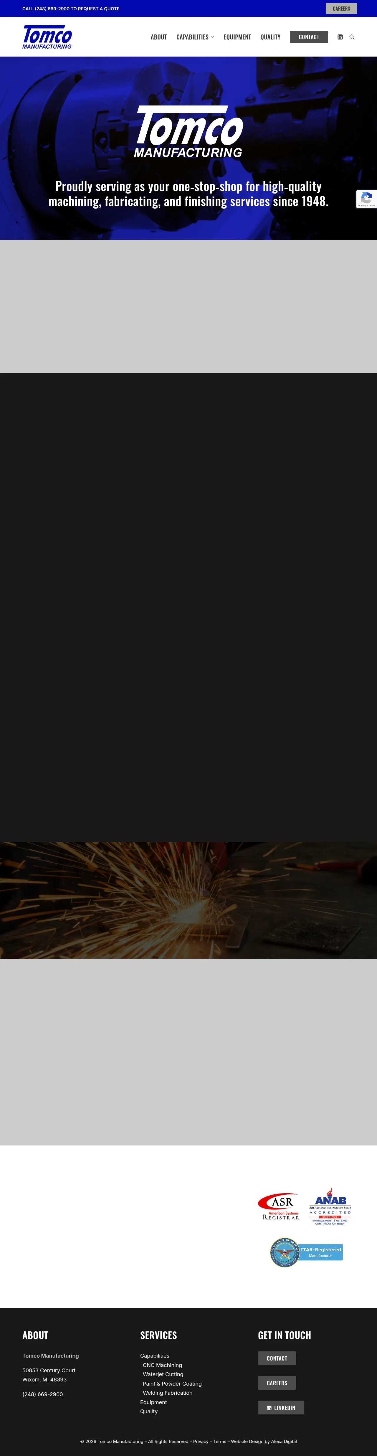 Tomco Manufacturing provides custom machining, metal fabrication, and finishing services for a diverse range of industrial applications. The company utilizes advanced CNC technology and waterjet cutting to produce high-precision components and complex assemblies. Their facility offers comprehensive metal processing solutions, including welding, lathe turning, milling, and specialized powder coating. Committed to rigorous quality control, the manufacturer operates under an ISO 9001:2015 certified quality management system. They serve various industries by managing projects from prototyping through high-volume production.