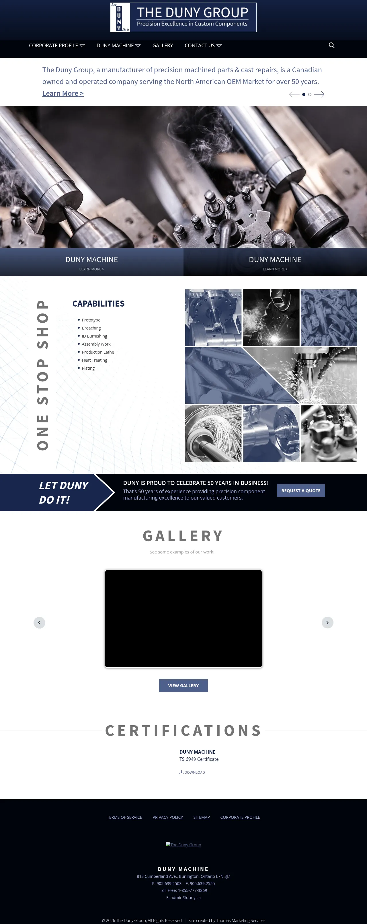 Established in 1970, Duny Machine is a precision component manufacturer operating a 20,000 square foot facility in Burlington, Ontario. The company specializes in high-volume production, serving clients across the automotive and aerospace industries. Their technical expertise includes screw machining, CNC milling, and lathe work, supported by in-house CAD/CAM programming and tooling capabilities. With over 50 years of experience, the company provides scalable manufacturing solutions ranging from small prototype runs to multi-million piece production batches.