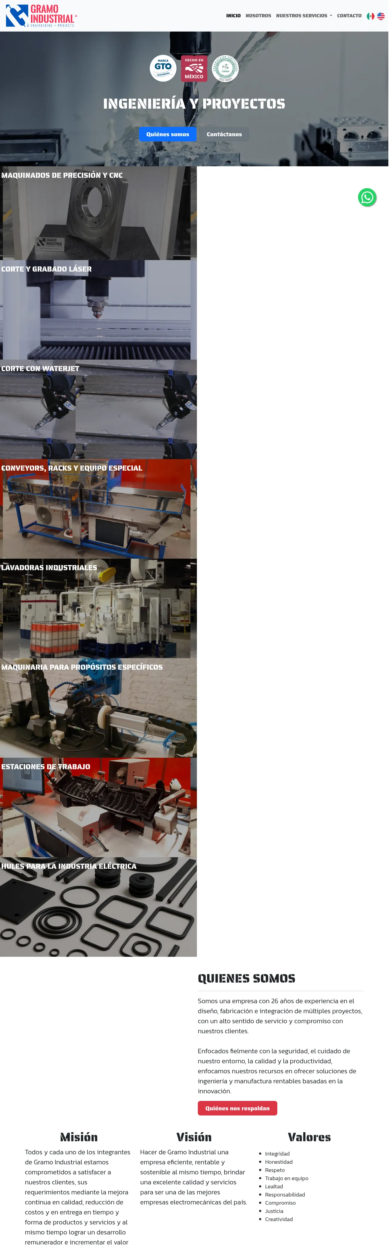 Gramo Industrial is a Mexican engineering and manufacturing firm that designs, fabricates and integrates production equipment and custom machinery. The company delivers precision CNC machining, laser cutting and engraving, waterjet cutting and special-purpose equipment for industrial applications. It emphasizes safety, environmental management, quality and continuous improvement in its projects and services.