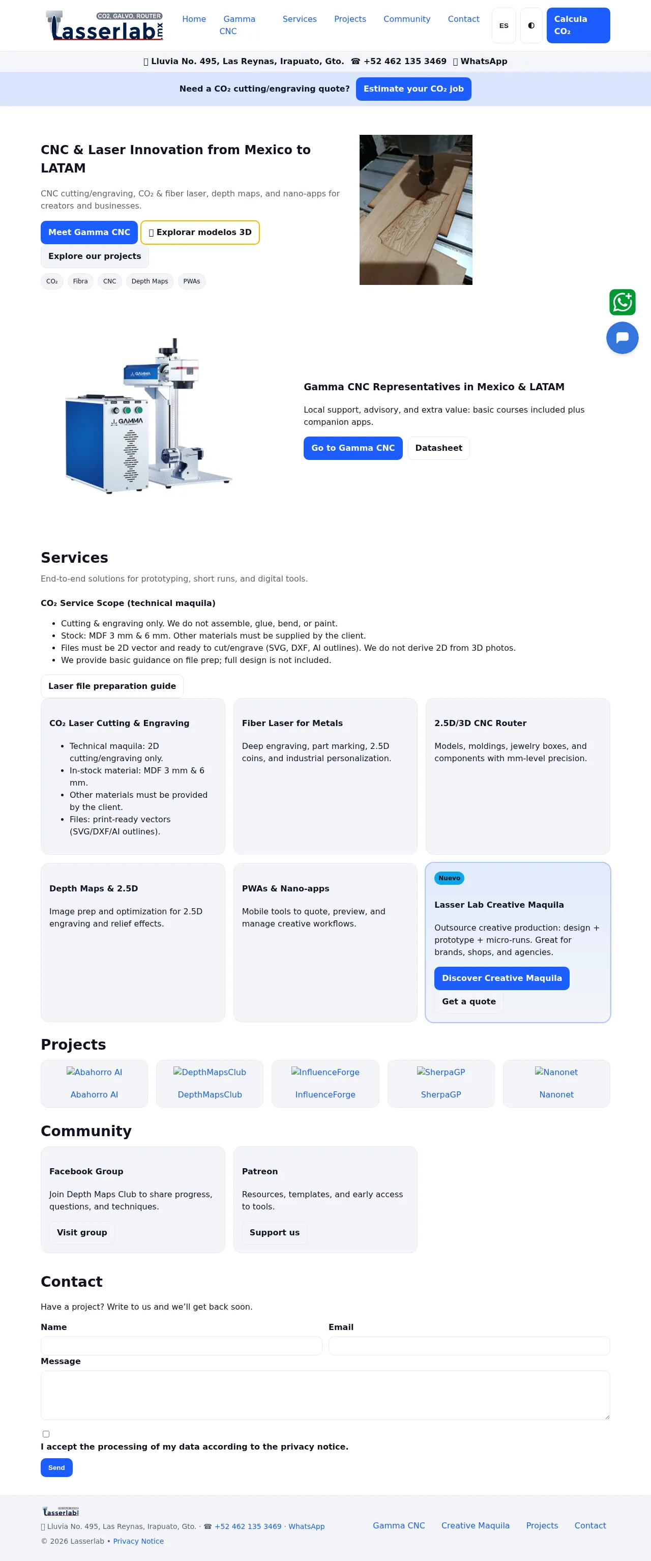 Based in Irapuato, Guanajuato, this company provides laser and CNC contract services for design, prototyping and small-scale production. It specializes in fiber, CO₂ RF and UV laser systems as well as galvo laser processing for metal components, and operates 2.5D/3D CNC routers. The firm also offers local equipment support and warranty for its laser systems.