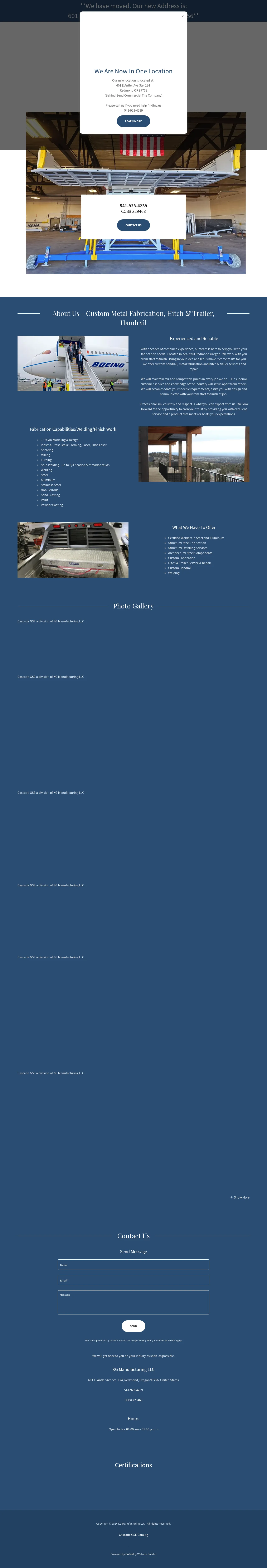 KG Manufacturing LLC, which includes the Cascade GSE division, is a metal fabrication company based in Redmond, Oregon. The firm specializes in structural steel fabrication, architectural components, and custom metalwork including handrails. They provide comprehensive manufacturing services ranging from plasma cutting and press brake forming to welding and finishing processes like sandblasting and powder coating. Serving various sectors, the company leverages a centralized facility to maintain high standards of production and reliability. Their team utilizes certified welding processes to ensure quality across projects involving diverse metal types.