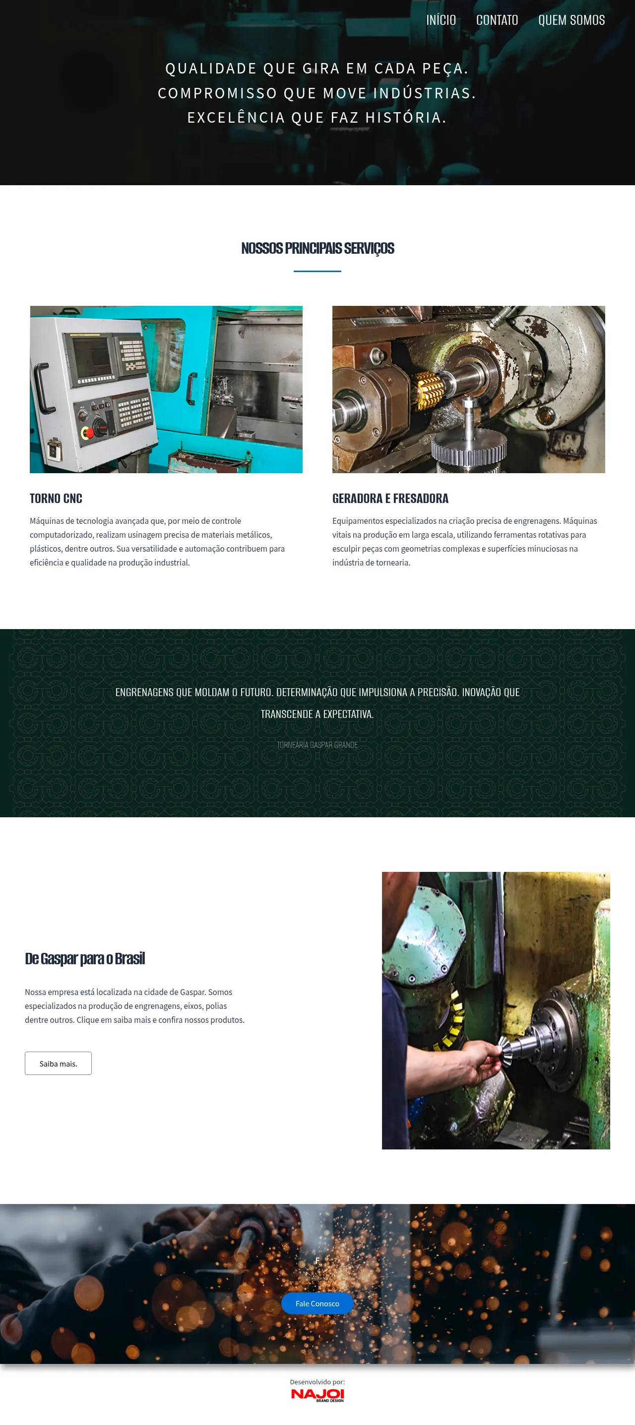 Tornearia Gaspar Grande is an industrial manufacturer based in Gaspar, Santa Catarina, with over thirty years of experience in the machining sector. The company specializes in the precision production of mechanical components, including gears, shafts, and pulleys. Their facility utilizes advanced CNC turning, gear hobbing, and milling technologies to provide custom industrial manufacturing solutions. The company serves a variety of industrial sectors, focusing on delivering high-quality, reliable metal and plastic components. Their operational approach centers on maintaining high production standards and precise manufacturing processes to meet diverse client requirements.