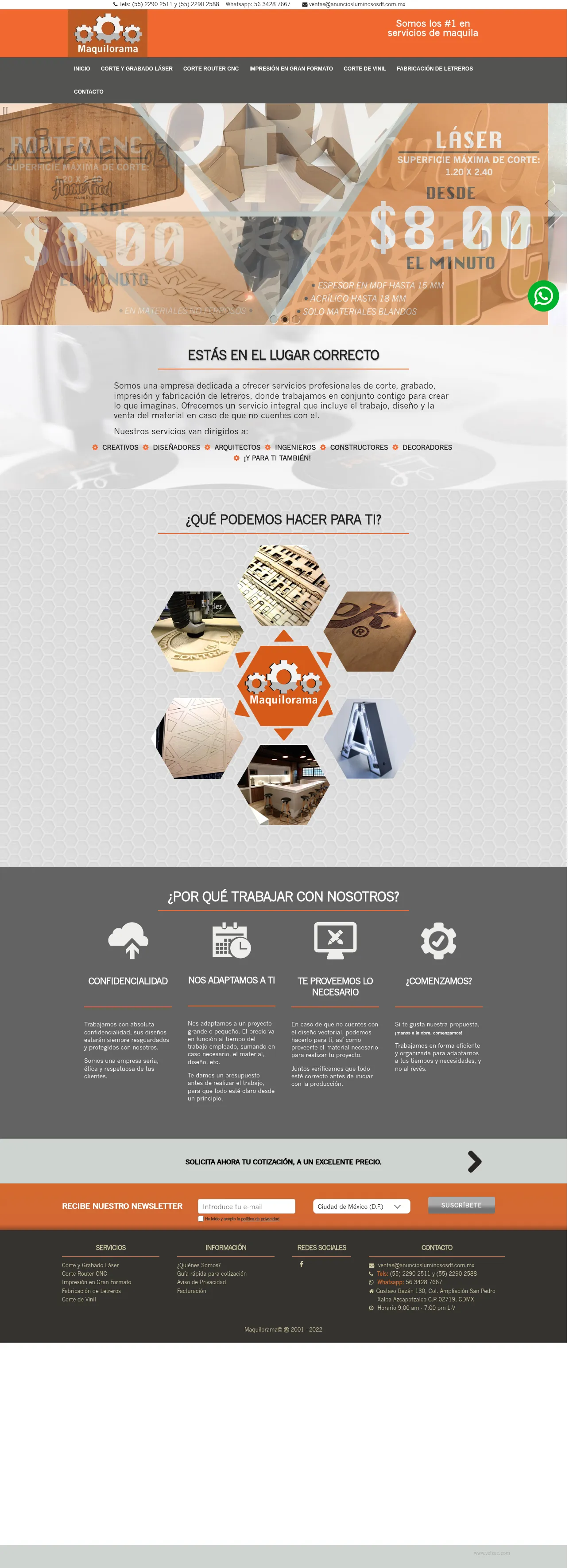 Maquilorama is a premier provider of industrial manufacturing and signage services based in Mexico City. The company specializes in precision laser cutting, CNC router machining, and large-format printing for various commercial and promotional applications. Their expertise extends to the fabrication of custom 3D signage, illuminated displays, and decorative vinyl applications for both corporate and retail environments. With 24-hour service capabilities, the company supports clients with rapid turnaround times for signage and component manufacturing. They utilize a range of materials, including wood and metals, to produce tailored solutions ranging from vehicle wraps to professional architectural lettering.