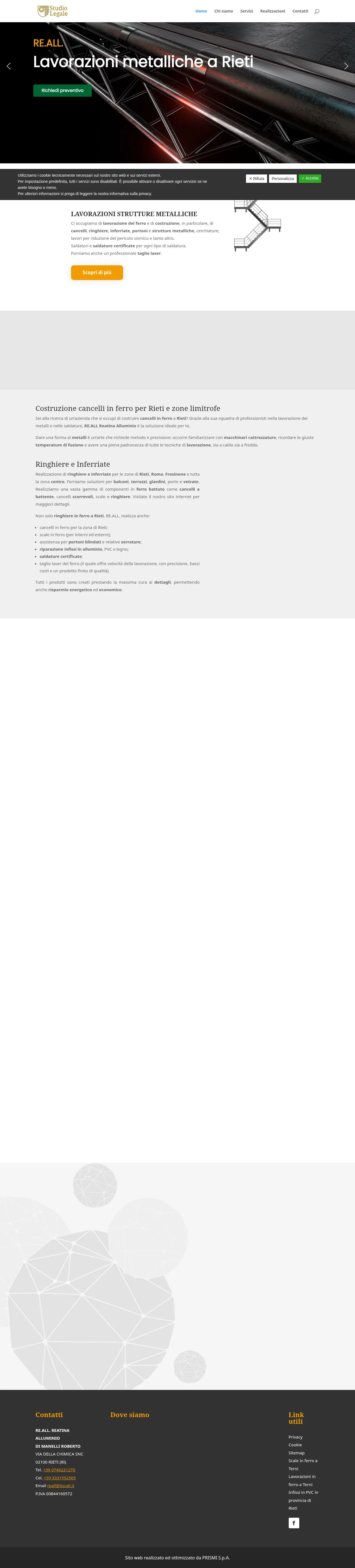 RE.ALL. Reatina Alluminio is a metalworking company based in Rieti, Italy, established in 1996. The company specializes in the design and fabrication of iron and aluminum structures, including gates, railings, grilles, and staircases for both residential and commercial applications. They provide comprehensive services such as professional laser cutting, certified welding, and installation of armored doors and window frames. Serving clients throughout the Rieti province and central Italy, the firm focuses on structural integrity and precision in metal fabrication. Additionally, they offer seismic retrofitting services and technical assistance for security hardware and lock systems.
