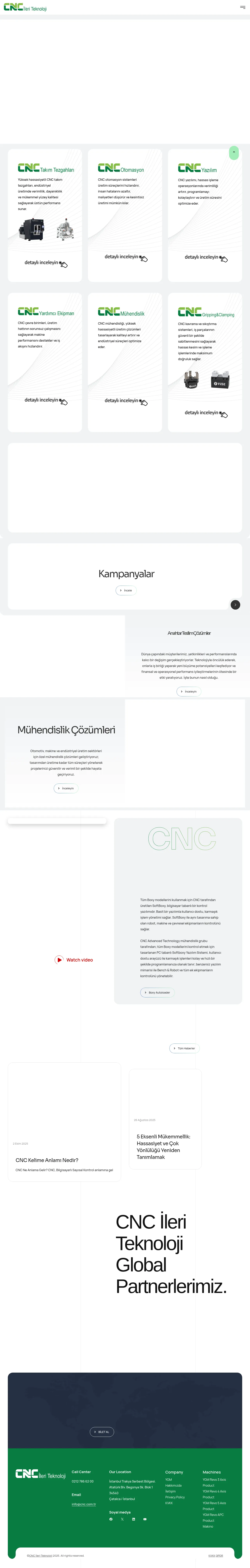 CNC İleri Teknoloji specializes in high-precision CNC machine tools, automation systems, and industrial engineering solutions. The company provides comprehensive support for sectors including automotive, machinery, and general manufacturing, managing projects from initial design through to final production. Key capabilities include the integration of CNC software, advanced gripping and clamping systems, and specialized industrial peripherals. They focus on improving operational performance and efficiency through the implementation of cutting-edge technology and custom turnkey manufacturing strategies. Headquartered in Istanbul, the firm serves a global client base by combining technical expertise with reliable, high-performance machinery.