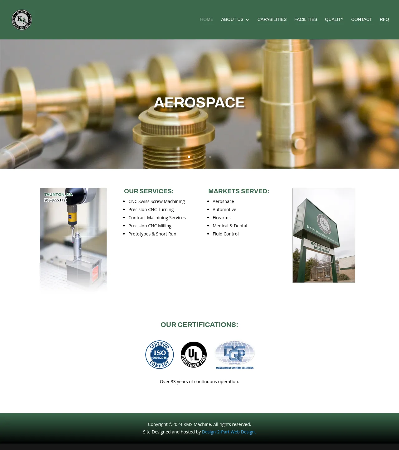 KMS Machine Works, Inc. is a precision contract manufacturer based in Taunton, Massachusetts, offering over 33 years of experience in high-precision machining. The company specializes in CNC Swiss screw machining, multi-axis mill-turn, turning, and milling services for demanding sectors including aerospace, medical, semiconductor, and fluid control. Operating from a 26,000-square-foot facility, they utilize advanced inspection and deburring capabilities to ensure strict adherence to customer specifications. The firm is committed to continuous improvement, maintaining an ISO 9001:2015-registered quality management system to deliver cost-competitive, high-quality components. Their team focuses on long-term partnerships by providing flexible production and technical expertise for complex technical components.