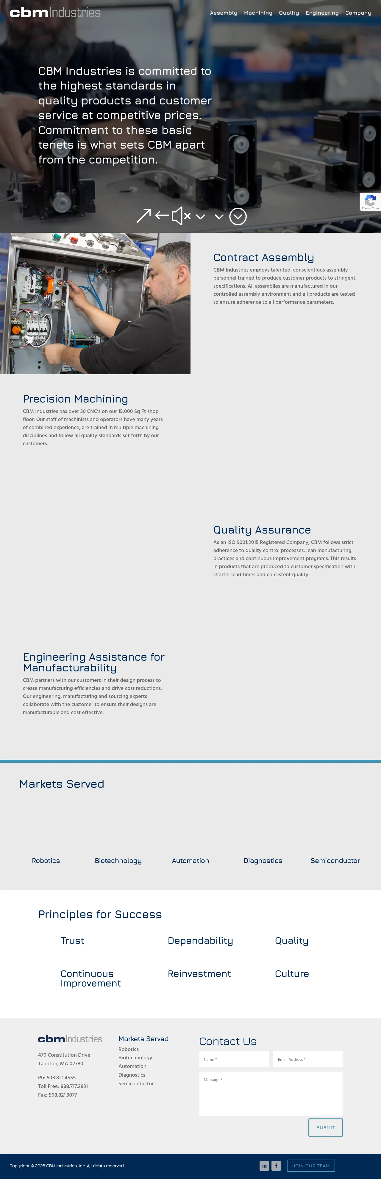 CBM Industries is a contract manufacturer specializing in precision CNC machining and electromechanical assembly. Operating from a 15,000 square-foot facility, the company provides end-to-end services including engineering support, prototyping, clean room assembly, and finished goods logistics. They serve clients in sectors such as robotics, biotechnology, diagnostics, and semiconductors. Their production capabilities are supported by advanced metrology equipment and rigorous statistical process control to ensure quality compliance. Additionally, the company provides supply chain management, refurbishment, and full-scale product launch support.