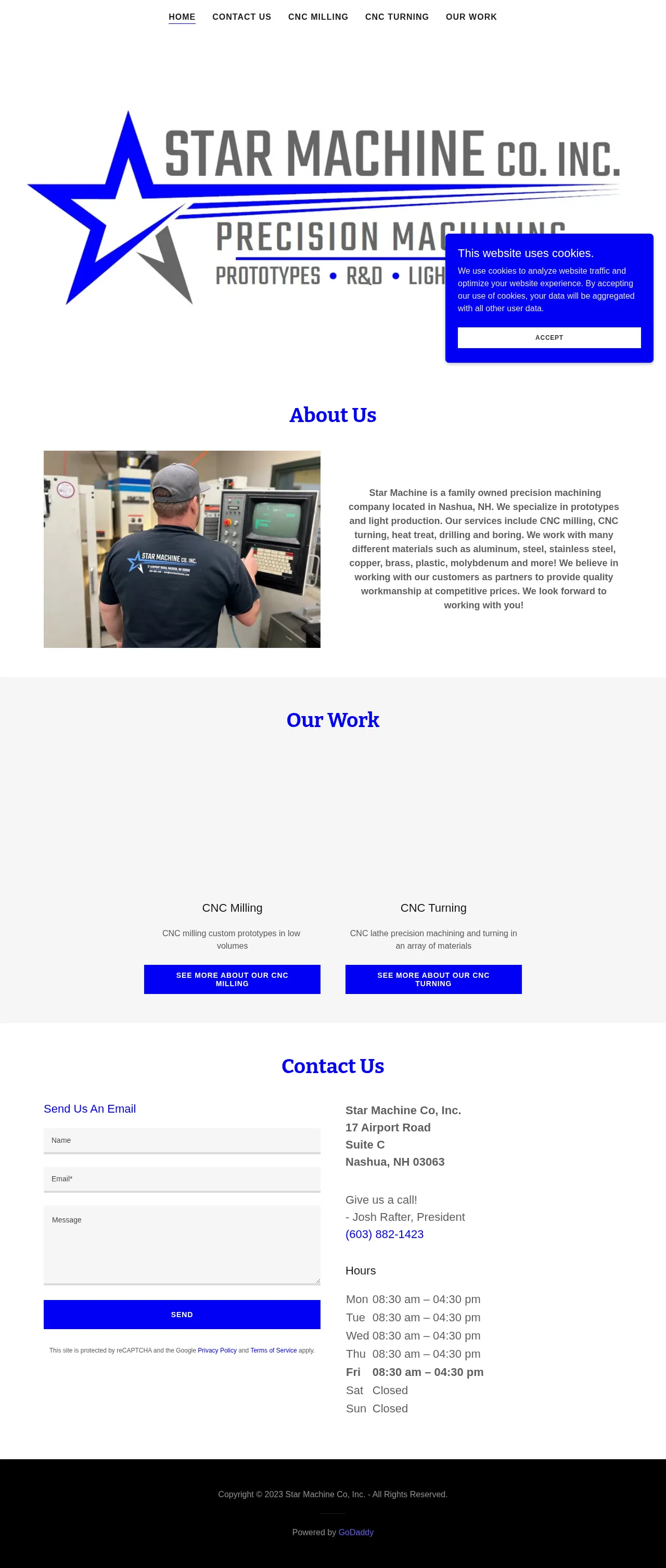 Star Machine Co, Inc. is a precision manufacturing firm located in Nashua, New Hampshire. The company specializes in high-quality CNC milling and turning services to support diverse industrial needs. They maintain the capability to handle production runs ranging from single prototype parts to volumes exceeding 100 units. By utilizing a variety of metallic and plastic materials, the firm delivers customized components designed for rigorous applications. Their facility provides professional machining services with an emphasis on accuracy and reliable turnaround times.