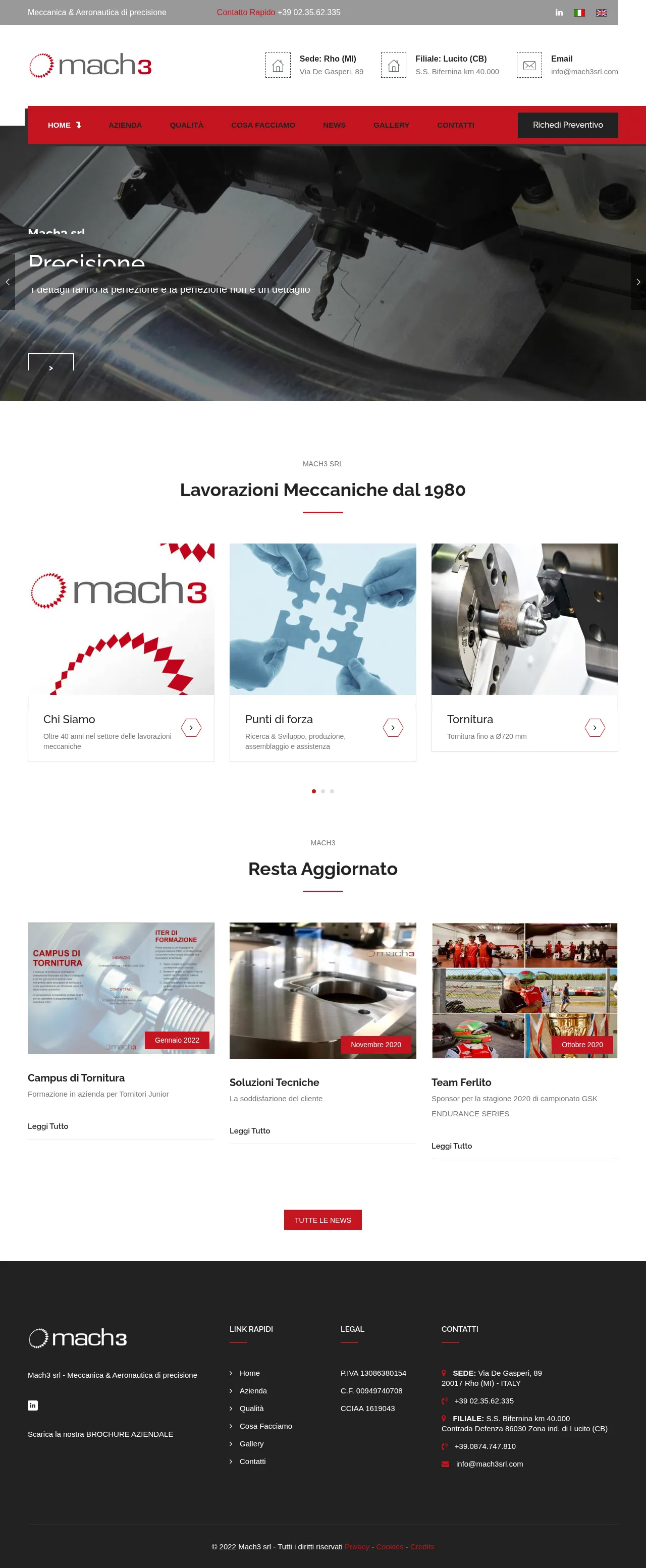 Mach3 is a precision mechanical engineering firm with over 40 years of experience in the manufacturing sector. The company provides specialized machining solutions, including turning, milling, grinding, and assembly services. They cater to a diverse range of industrial needs by focusing on high-precision output and consistent quality standards. With facilities in Rho and Lucito, Italy, Mach3 combines long-term technical expertise with a commitment to sustainable and reliable production practices.