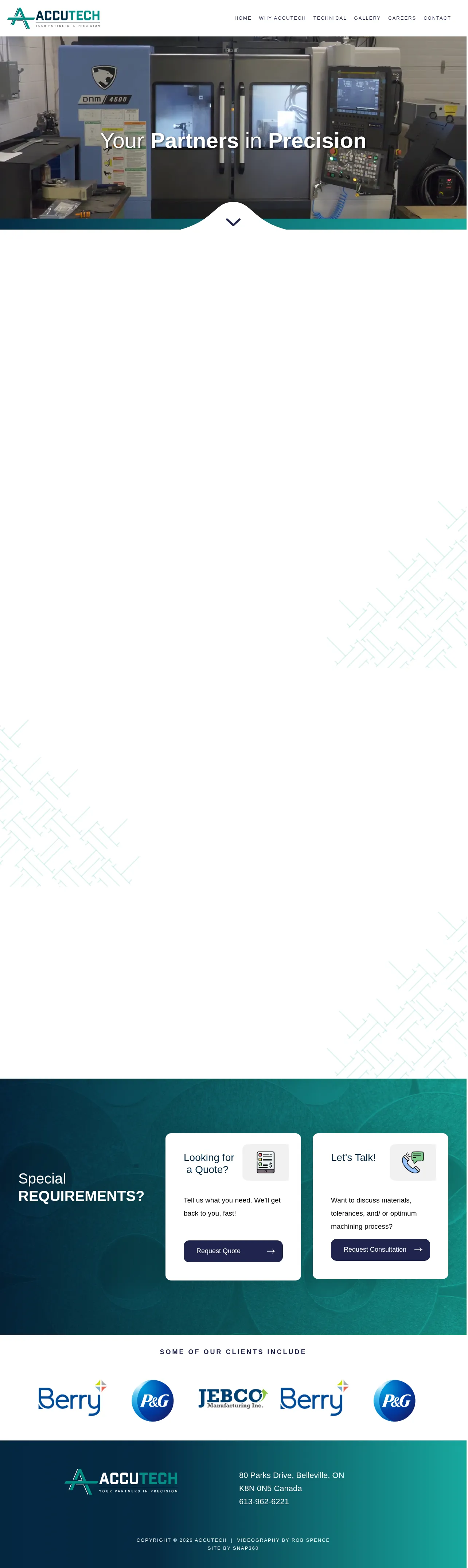 AccuTech Machine and Tool is a precision manufacturing company providing high-quality CNC machining and tooling services. Based in Belleville, Ontario, the company specializes in complex geometries and tight-tolerance components for diverse industries, including medical, automotive, mining, and consumer goods. Their facility is equipped with advanced 3-axis, 4-axis, and 5-axis CNC machining centers, alongside wire EDM and grinding capabilities. By leveraging high-precision metrology and a temperature-controlled environment, they ensure consistent, repeatable production outcomes. The company emphasizes strong client partnerships, offering design-to-production support and transparent project management.