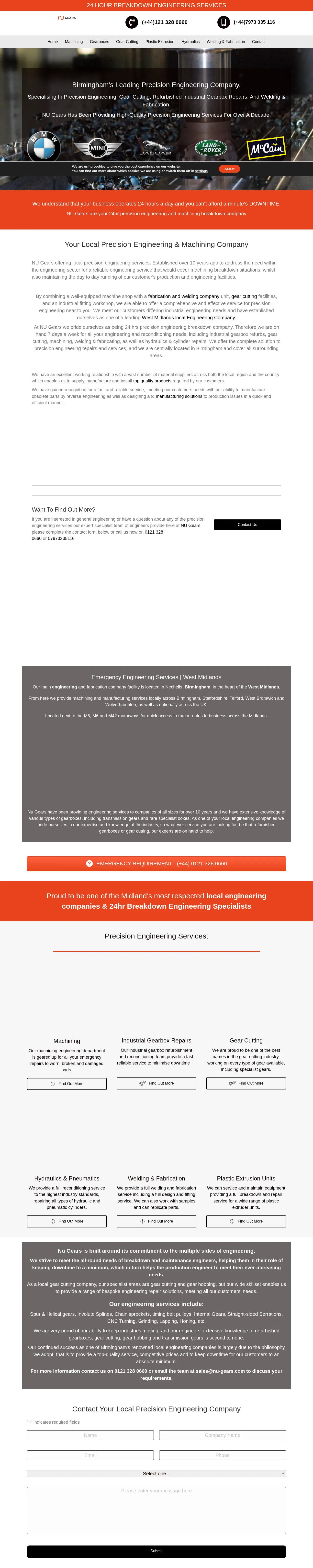 NU Gears is a Birmingham-based precision engineering firm specializing in gear cutting, industrial gearbox repair, and bespoke machining services. Established over a decade ago, the company provides 24-hour emergency breakdown support alongside routine maintenance to minimize production downtime for industrial clients. Their expertise spans gear hobbing, hydraulic and pneumatic cylinder repair, and fabrication. Located strategically near major motorways, they serve a diverse range of sectors throughout the West Midlands and across the United Kingdom. The company is committed to delivering high-quality, reliable engineering solutions tailored to both large-scale production facilities and specific maintenance requirements.