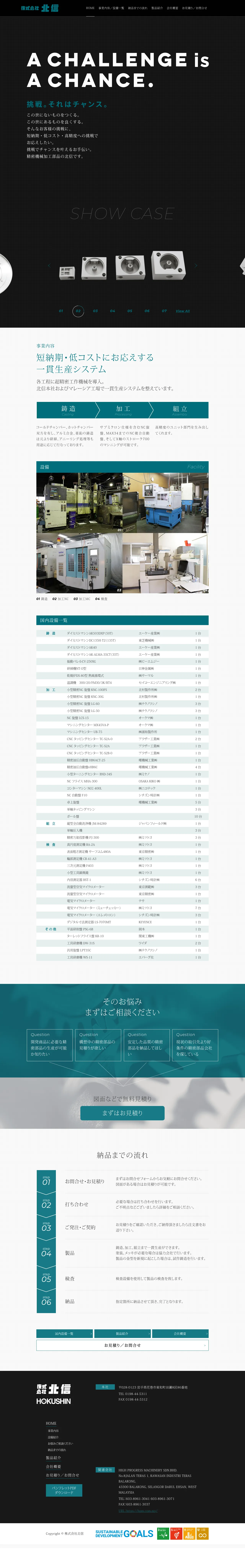 Hokushin Co., Ltd. is a precision manufacturing company specializing in integrated production systems for mechanical components. The company provides comprehensive services including casting, precision machining, and assembly across facilities in Japan and Malaysia. With capabilities ranging from hot and cold chamber die casting to high-precision NC turning and milling, they support clients from prototyping to full-scale production. Hokushin focuses on delivering high-accuracy, cost-effective solutions for challenging engineering projects. They also manage secondary processes such as plating and painting through an established network of partner companies.