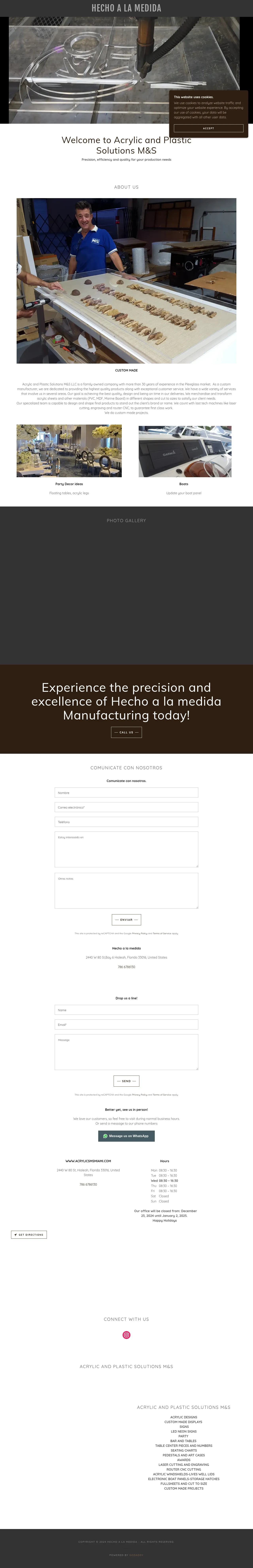 Acrylics MS Miami specializes in custom plastic fabrication, providing tailored manufacturing solutions for a variety of residential and commercial applications. The company offers a wide range of services including precision laser cutting, CNC routing, and the production of bespoke acrylic components. They serve diverse sectors, including marine hardware producing boat panels, windshields, and storage hatches as well as event decor and professional signage. With a focus on craftsmanship and project-specific requirements, the facility provides both full-sheet stock and custom-sized parts to meet client specifications. The business emphasizes a personalized approach to manufacturing, ensuring high-quality results for unique decorative and functional plastic projects.
