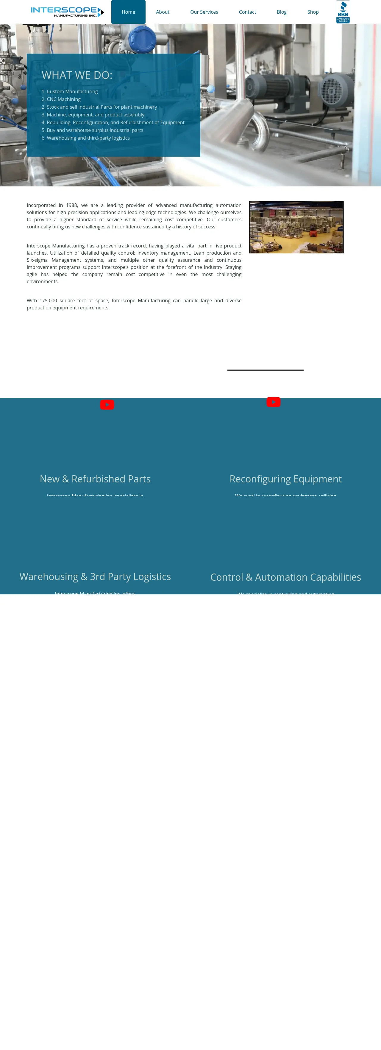 Established in 1988, Interscope Manufacturing Inc. specializes in advanced automation and precision manufacturing solutions for diverse industrial sectors. The company provides a comprehensive suite of services, including CNC machining, custom equipment assembly, and professional refurbishment of industrial machinery. Operating from a 175,000-square-foot facility, they utilize Lean production and Six-Sigma management systems to ensure high quality and operational efficiency. Their capabilities extend to specialized warehousing and third-party logistics to support complex supply chain requirements. Interscope is recognized for maintaining agility, providing cost-competitive services, and supporting product development from concept to launch.