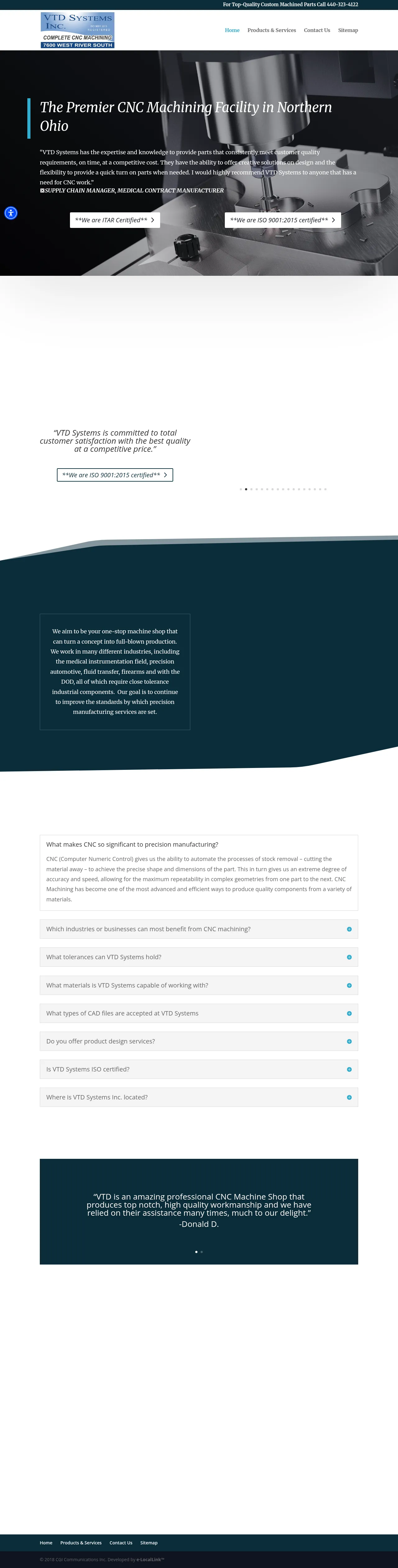 Established in 1994, VTD Systems, Inc. is a precision machining and fabrication facility based in Elyria, Ohio. The company specializes in CNC milling, turning, and Swiss machining, offering turnkey manufacturing solutions from initial prototyping to full-scale production. They serve diverse sectors, including medical instrumentation, automotive, aerospace, and defense. VTD Systems distinguishes itself through comprehensive project support, which includes design assistance, inventory management, and specialized finishing services. The company maintains an emphasis on precision, holding tight tolerances to ensure high-quality, repeatable components for global industrial clients.