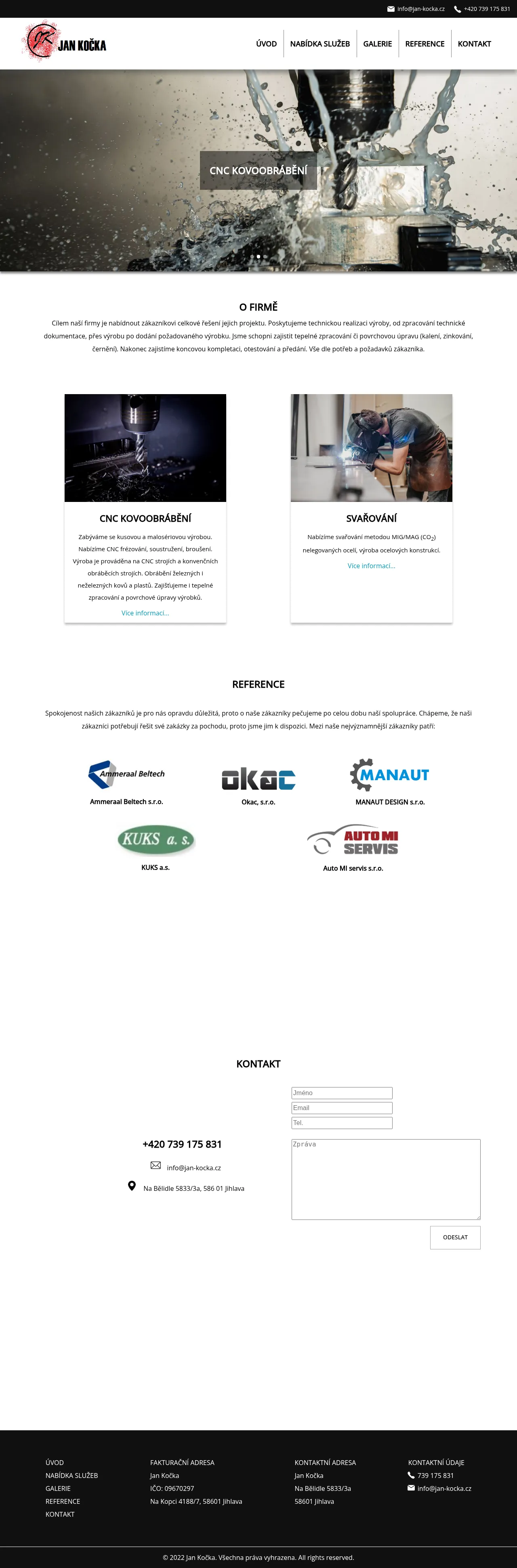 Jan Kočka is a manufacturing company based in Jihlava, specializing in CNC machining and welding services. The company provides comprehensive project support, ranging from the processing of technical documentation to production, final assembly, and testing. Their core capabilities include precision CNC milling, turning, and grinding for both individual components and small production runs. Additionally, they offer structural welding and various surface treatment options. The firm emphasizes quality and timely delivery, serving a diverse range of client requirements across various metal and plastic materials.