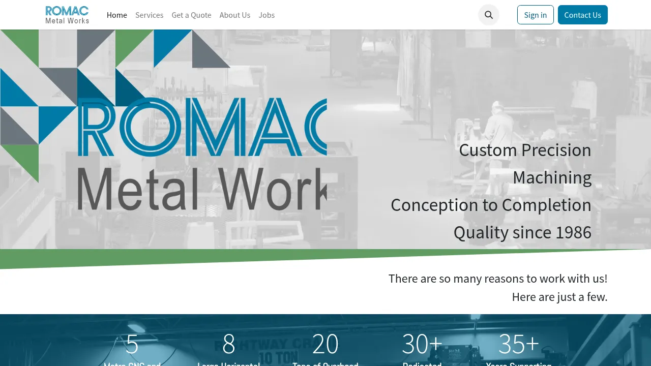 Romac is a North American manufacturing firm specializing in custom precision metal machining and fabrication. The company provides comprehensive services from initial conception through to final project completion. With over 30 years of industry experience, Romac leverages heavy investments in advanced technology and digital integration to maintain operational efficiency. Their facilities feature large-scale capabilities, including high-capacity overhead lifting and horizontal machining, to support complex industrial projects. Romac emphasizes professional development and technical innovation as core pillars of its business model.