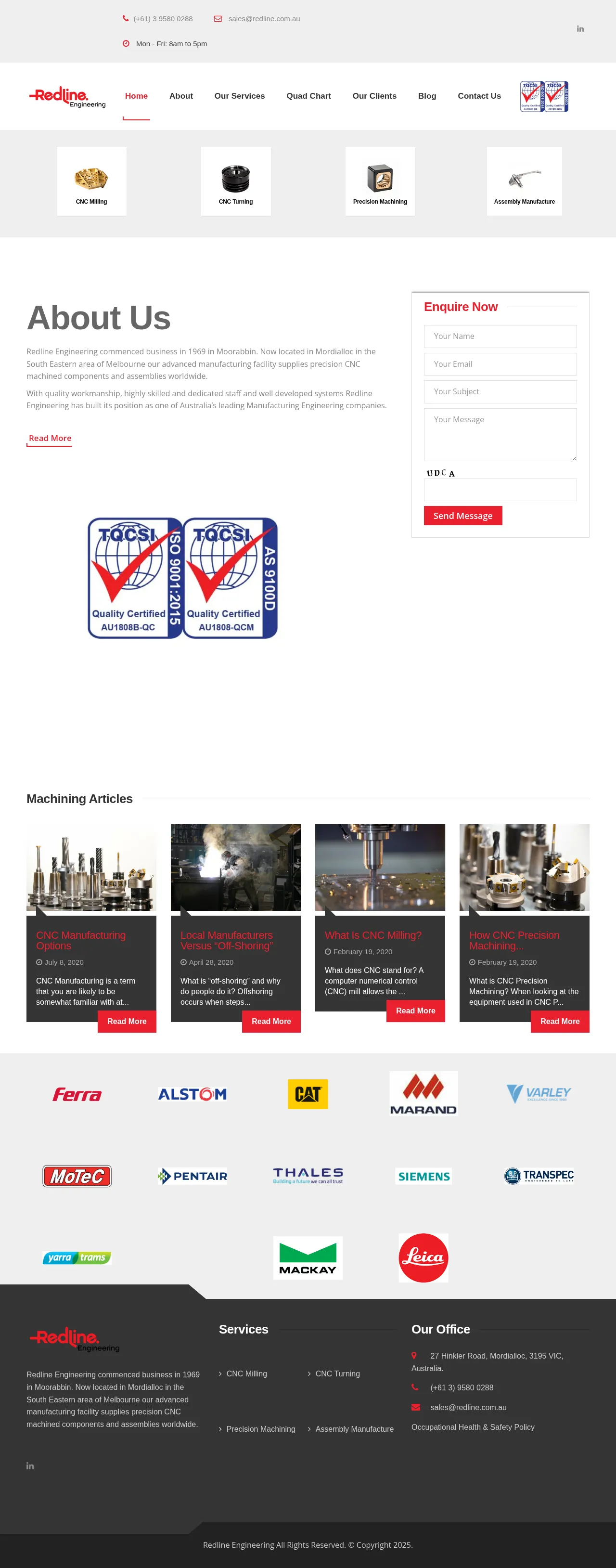 Redline Engineering is a precision manufacturing facility based in Mordialloc, Victoria, specializing in advanced CNC machining and assembly services. The company provides high-precision components to a diverse range of sectors, including the energy, aerospace, medical, transport, and construction industries. With over 50 years of industry experience, their facility utilizes sophisticated metrology and multi-axis machining technology to ensure quality and consistency. They distinguish themselves through a commitment to technological investment, collaborative long-term partnerships, and a comprehensive approach to manufacturing solutions.