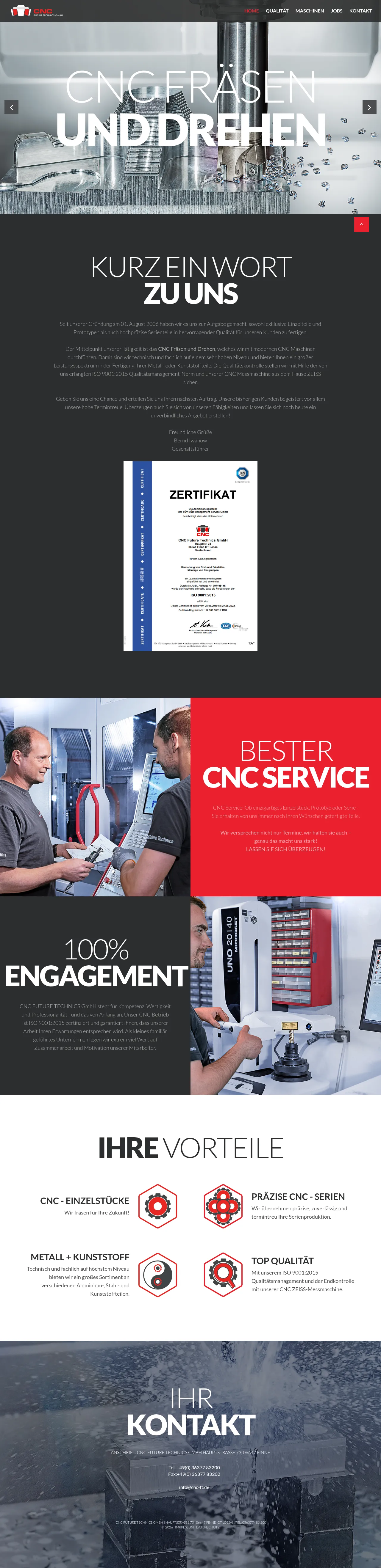 CNC Future Technics GmbH manufactures prototypes, individual components and high-precision series parts using modern CNC milling technology. The company produces metal and plastic components and performs final quality control with a ZEISS CNC measuring machine. It operates under an ISO 9001:2015 quality management system and emphasizes reliable on-time delivery.