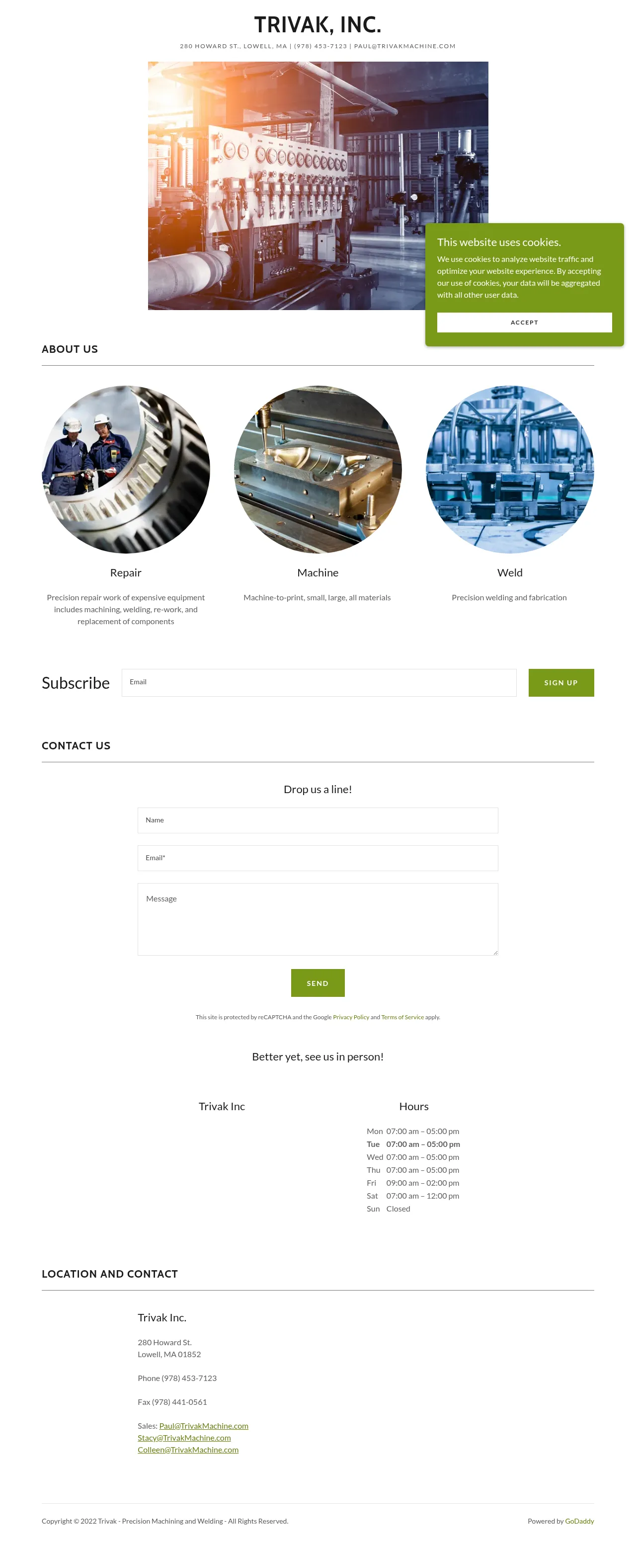 280 Howard St, Lowell, MA 01852, USA, Billerica, Massachusetts, United States(978) 453-7123paul@trivakmachine.comhttps://trivakmachine.com/