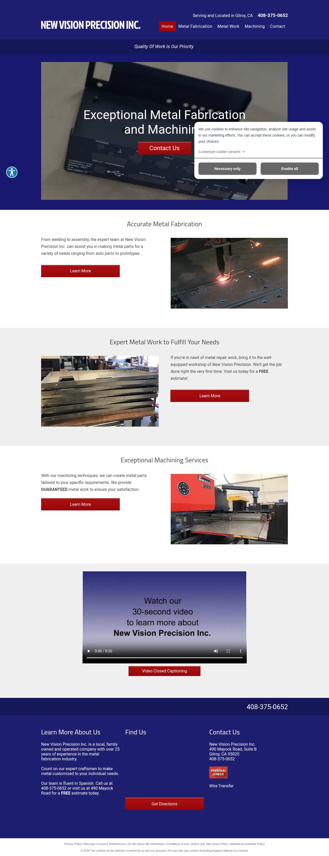 New Vision Precision Inc. is a family-owned and operated metal fabrication and machining shop based in Gilroy, California. With over 25 years of industry experience, the company specializes in producing custom metal parts for diverse applications ranging from automotive components to prototypes. Their core capabilities include welding, assembly, sheet metal forming, and precision machining services. The facility is equipped to handle comprehensive metal repair work and custom fabrication projects tailored to client specifications. The company emphasizes high-quality workmanship, quick turnaround times, and professional service for all manufacturing needs.