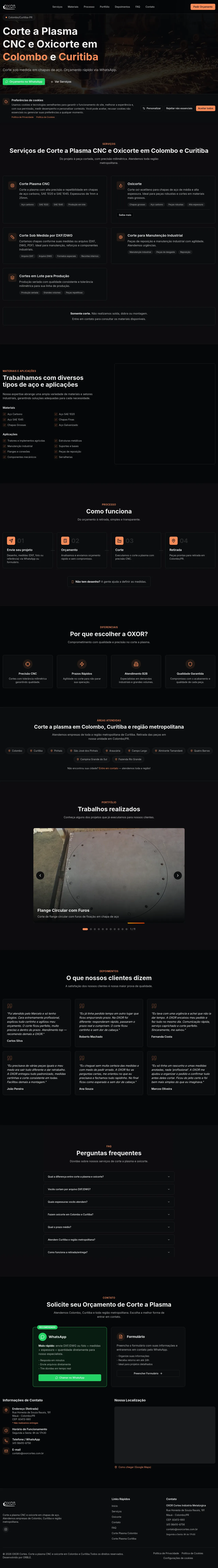 OXOR Cortes is a specialized metal processing facility located in Colombo, Brazil, providing professional CNC plasma cutting and oxy-fuel cutting services. The company focuses on the precision cutting of carbon steel plates, ranging from thin sheets to heavy-duty thicknesses of up to 25mm. Their capabilities support industrial maintenance, structural components, and high-volume production series for clients across the Curitiba metropolitan region. They operate on a build-to-print model, accepting various file formats including DXF and DWG for consistent and repeatable manufacturing results. The company does not perform welding, bending, or assembly services, ensuring a dedicated focus on high-precision cutting operations.