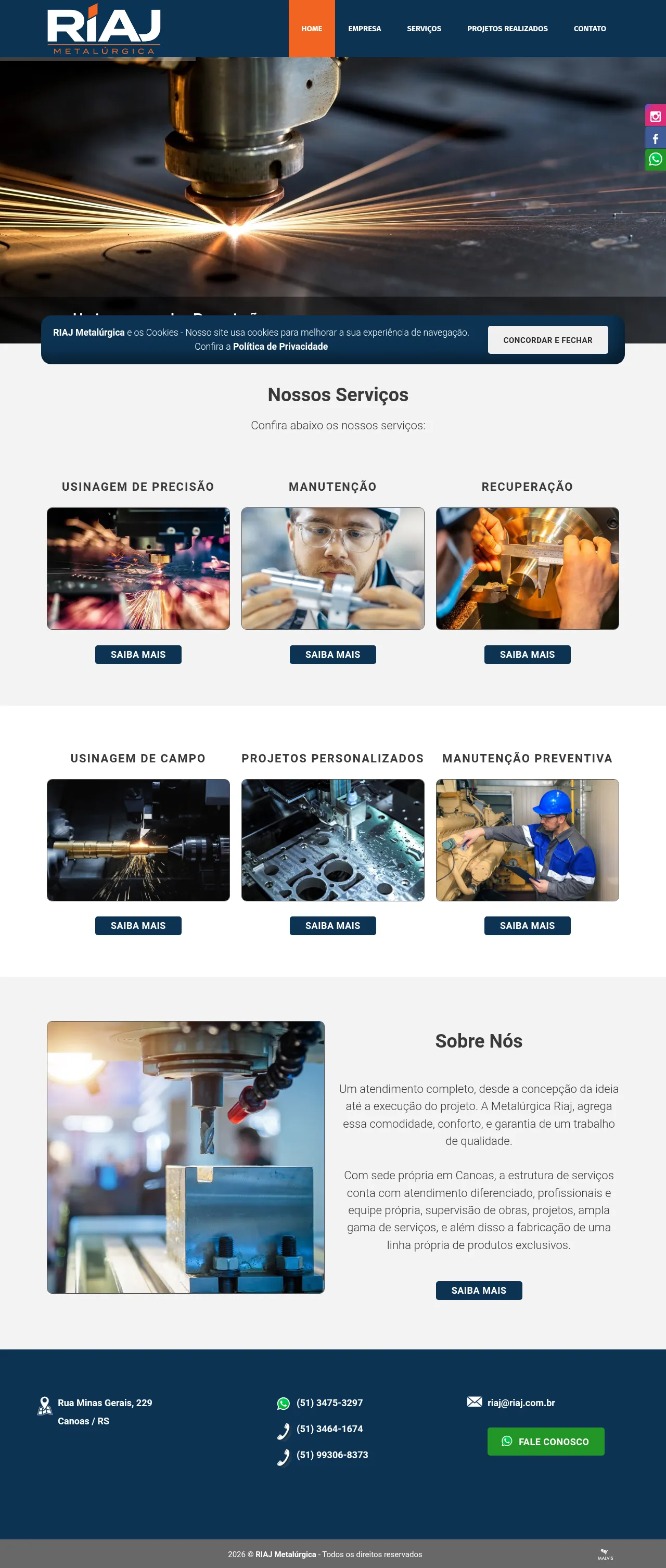 RIAJ Metalúrgica is a metalworking company based in Canoas, Brazil, that provides end-to-end support from concept and project design through to execution. The company operates its own facility with an in-house team, project supervision, and a proprietary product line. Services include precision machining, maintenance and repair, on-site machining, and customized project work supported by modern equipment and trained personnel.