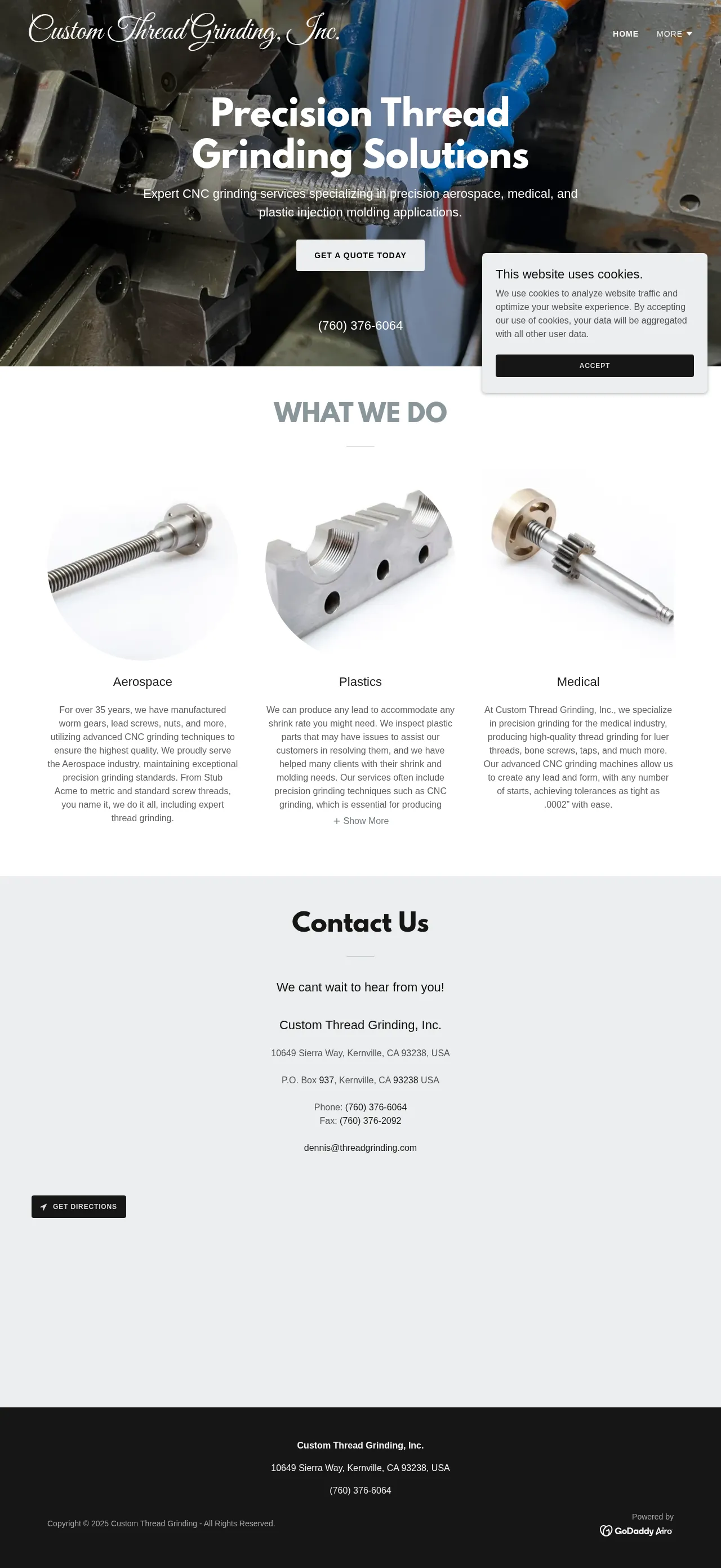 10649 Sierra Way, Kernville, CA 93238, USA, Oildale, California, United States(760) 376-6064dennis@threadgrinding.comhttp://www.threadgrinding.com/
