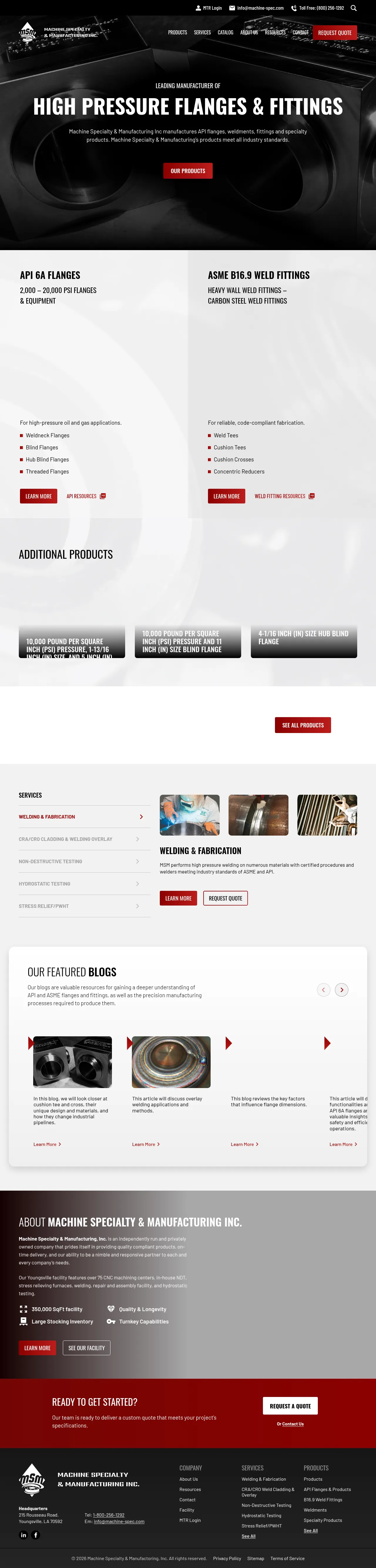 MSM is a full-service manufacturing provider specializing in high-pressure oil and gas components. The company operates a 350,000-square-foot facility in Youngsville, Louisiana, equipped with over 75 CNC machining centers to provide turnkey production solutions. Their product range includes API 6A flanges and ASME B16.9 weld fittings, engineered for high-pressure industrial pipeline applications. MSM offers comprehensive in-house services, including precision machining, welding, cladding, non-destructive testing, and hydrostatic testing. The company supports clients with both standard and custom-engineered components while maintaining rigorous quality control standards for code-compliant fabrication.