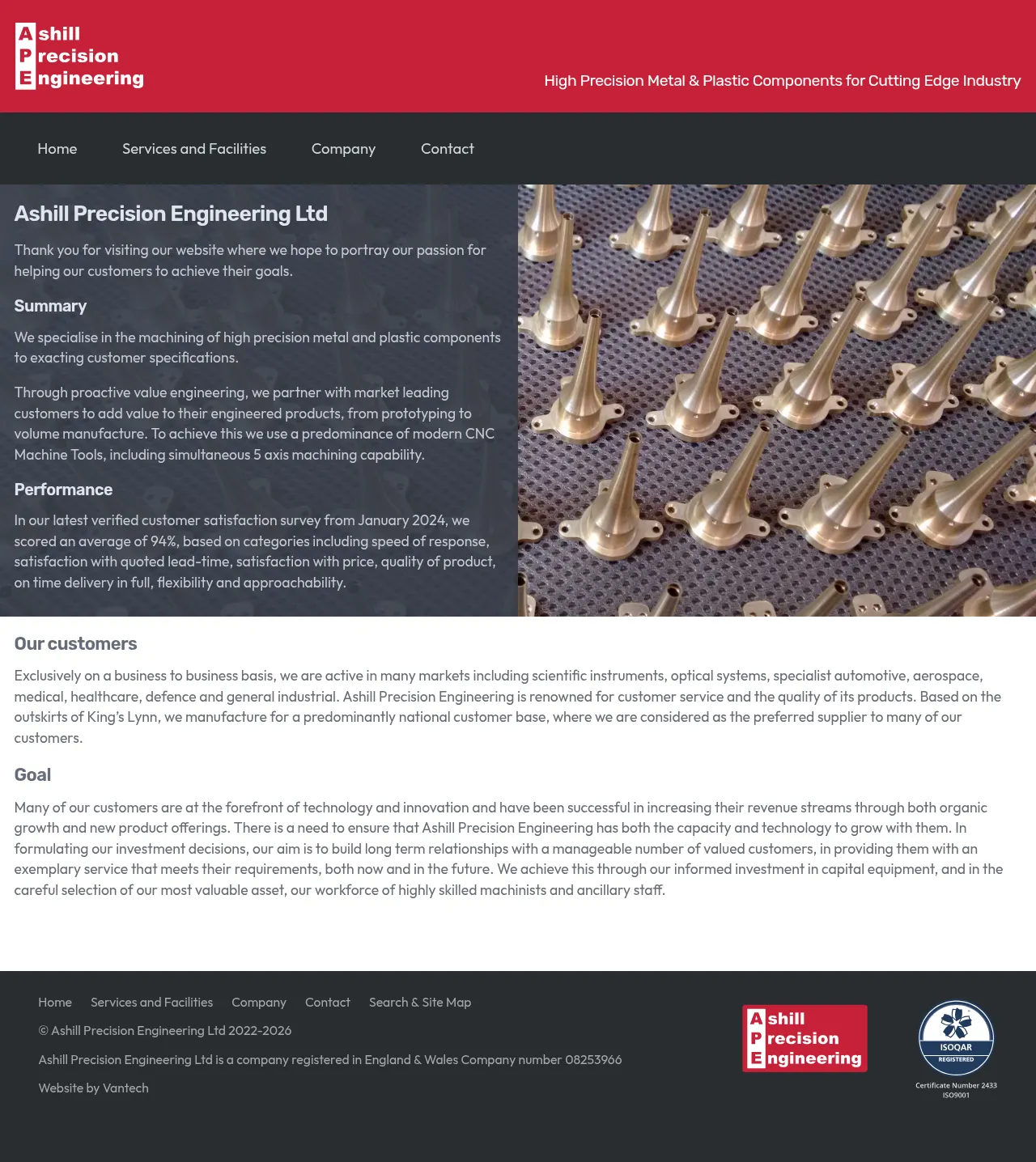 Ashill Precision Engineering Ltd provides high-precision machining services for metallic and plastic components. The company supports clients across diverse sectors, including aerospace, medical, automotive, defense, and scientific instrumentation. Their technical capabilities include 5-axis CNC machining, prototyping, and volume production. By integrating value engineering with modern manufacturing technology, they offer end-to-end support from design to delivery. They emphasize long-term partnerships and maintain a skilled workforce to meet evolving industry standards.