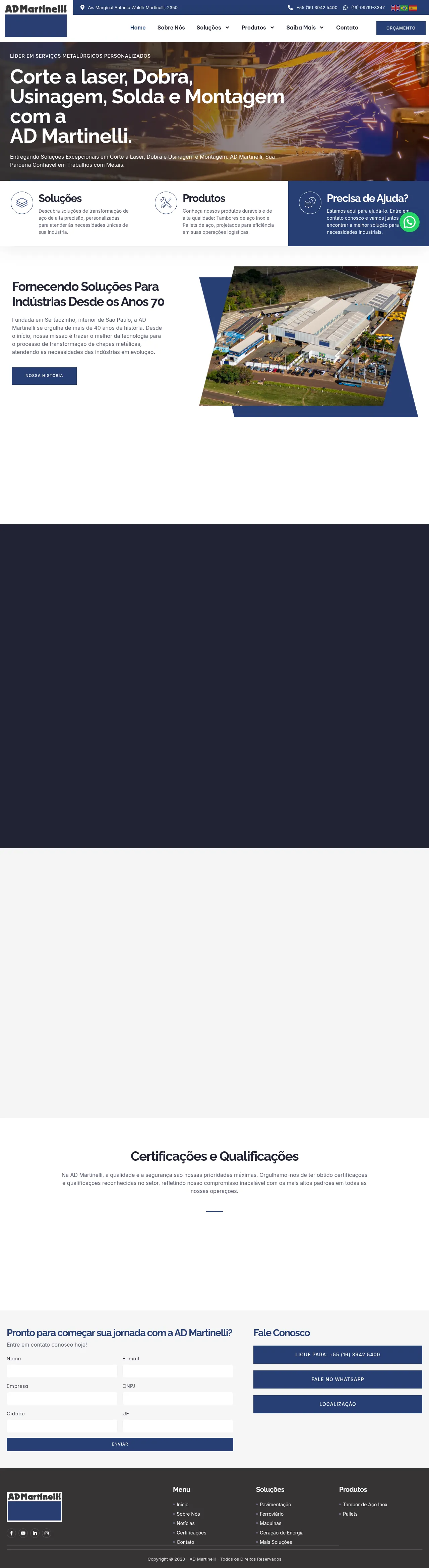 AD Martinelli is an industrial metal processing firm based in Sertãozinho, São Paulo, with over 40 years of experience. The company specializes in high-precision steel transformation, including laser cutting, bending, machining, welding, and metal assembly services. They cater to a diverse range of sectors, such as mining, civil construction, rail, agriculture, energy, and food production. In addition to custom metalwork, they manufacture industrial logistics products like stainless steel drums and carbon steel pallets. Their operations prioritize technological advancement and rigorous quality standards to meet evolving industrial requirements.