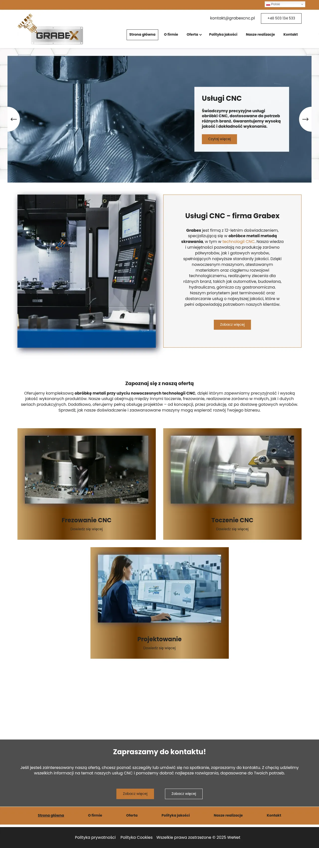 Grabex Wojciech Grabowski provides CNC metalworking services, specializing in turning and milling for both small and large production runs. The company delivers end-to-end project support from concept and design through production and delivery, using modern CNC technology to ensure precision and quality. It also offers engineering support to translate customer requirements into manufacturable parts.