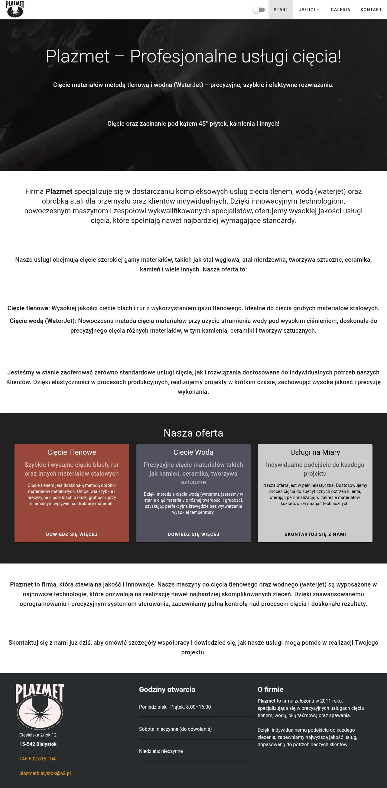 Ciesielska 2/lok.12, 15-542 Białystok, Poland, Białystok, Podlaskie Voivodeship, Republic of Poland660 300 261plazmetbialystok@o2.pl; plazmetbialystok@o2.pl; uslugiwoda3d@wp.plhttp://plazmet.com.pl/