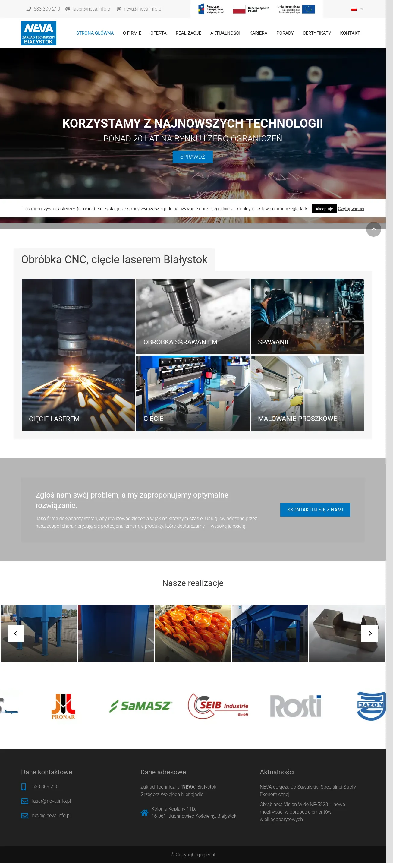 Cięcie laserem | Obróbka skrawaniem CNC - Zakład Techniczny NEVA