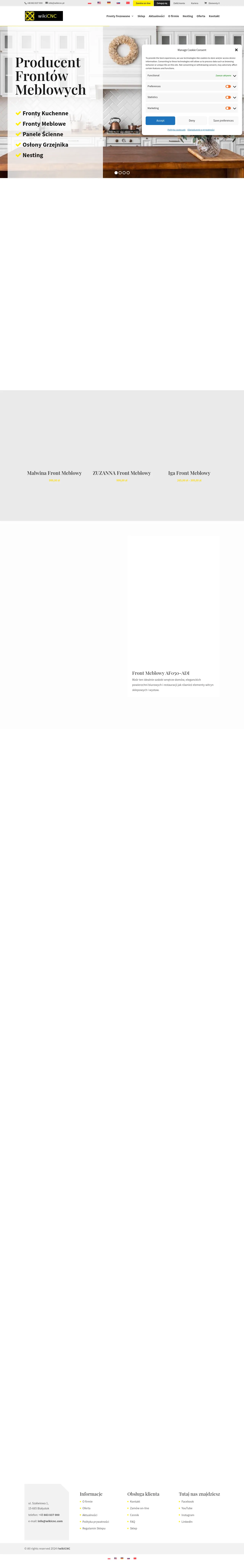 wikiCNC manufactures high-precision kitchen cabinet doors and milled decorative elements using advanced CNC technology. The company specializes in multi-axis machining, drilling, prototype production and precision profiling with subsequent sanding and surface preparation for painting. Production is supported by CAD/CAM design and nesting optimization to reduce waste. The manufacturing facility is located in the Podlasie region of Poland.