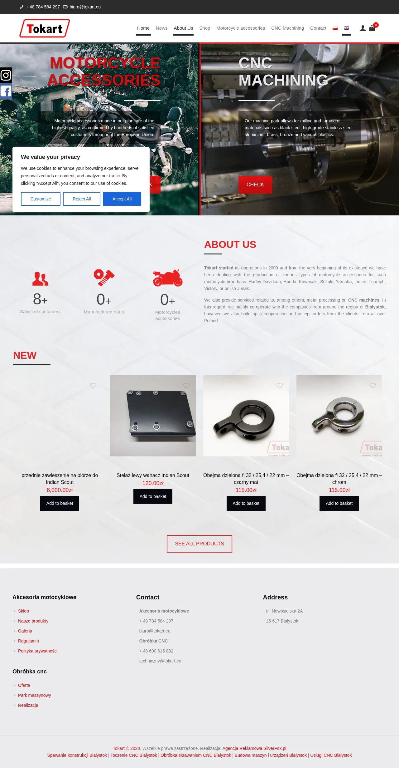 Tokart has produced motorcycle accessories since 2009 for brands including Harley-Davidson, Honda, Kawasaki, Suzuki, Yamaha, Indian, Triumph, Victory and Junak. The company provides precision metal and plastic machining and complete fabrication services including welding, cutting, bending and finishing. Tokart operates a well-equipped machine park, applies a rigorous quality-control process and holds patents on some of its components. The company participates in industry exhibitions and maintains its product range in line with market needs.