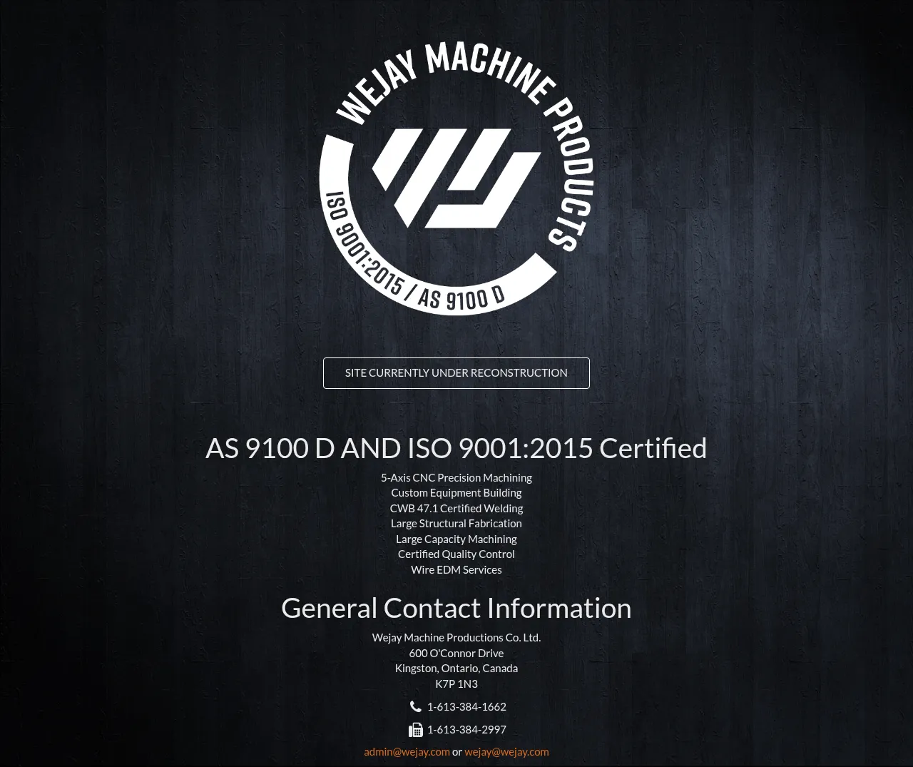Wejay Machine Productions Co. Ltd. is a Canadian-based manufacturer specializing in precision machining and large-scale structural fabrication. The company operates as a full-service machine shop capable of delivering complex 5-axis CNC components and custom equipment builds. They serve diverse industrial sectors, maintaining rigorous standards through their certified quality management systems. Their facility is equipped to handle heavy-duty manufacturing tasks while ensuring precision through advanced EDM and welding processes. Wejay focuses on delivering reliable manufacturing solutions from their Kingston-based operations.