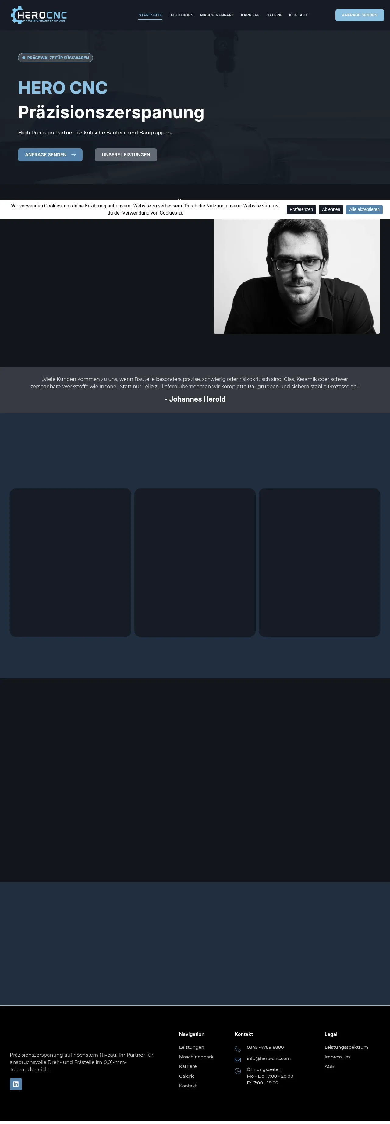 HERO CNC Präzisionszerspanung is a specialized manufacturing facility based in Halle (Saale), Germany, established in 2018. The company focuses on the production of high-precision, technically complex components and assemblies, ranging from single prototypes to small-batch production runs. They serve a variety of high-tech industries, utilizing a modern machine park and advanced CAM programming to achieve tolerances within 0.01 mm. The firm is particularly noted for its capability in processing challenging materials and its integration of automated systems for increased efficiency. Beyond core CNC machining, the company provides comprehensive assembly services and coordinates external specialized processes such as heat treatment and surface finishing.