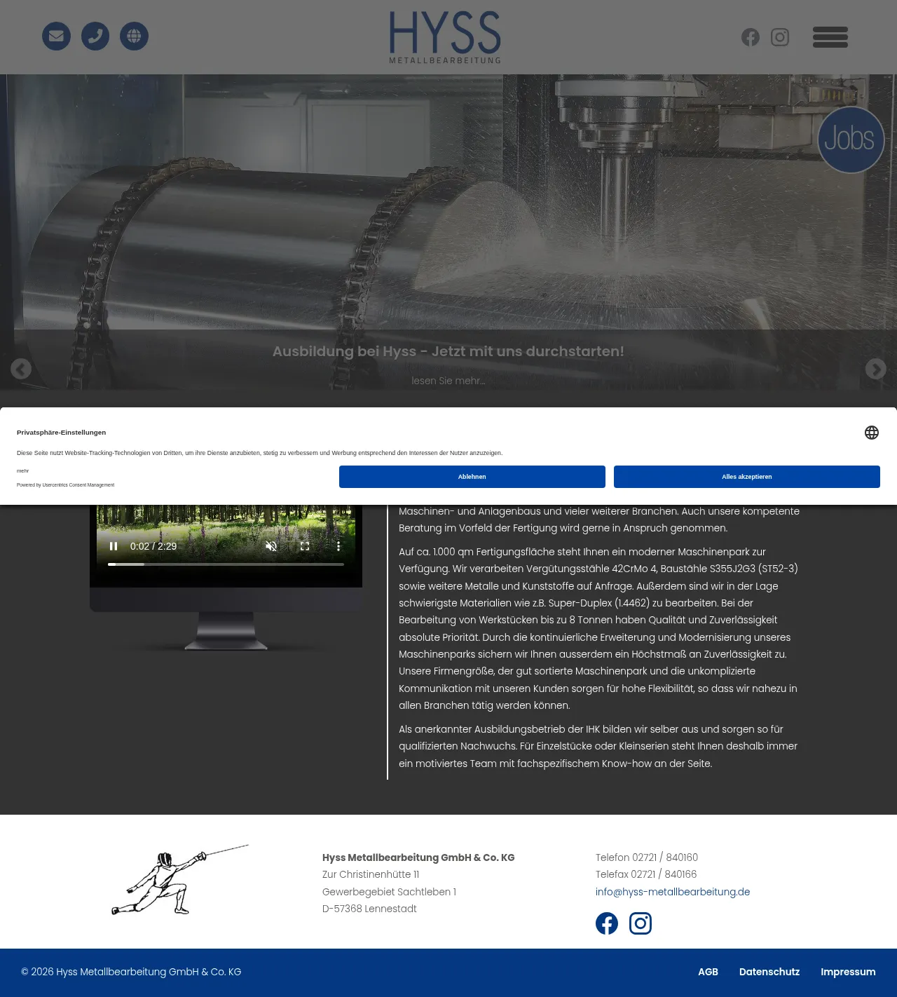 Zur Christinenhütte 11, 57368 Lennestadt, Germany, Lennestadt, Nordrhein-Westfalen, Federal Republic of Germany02721 840160info@hyss-metallbearbeitung.dehttp://hyss-metallbearbeitung.de/