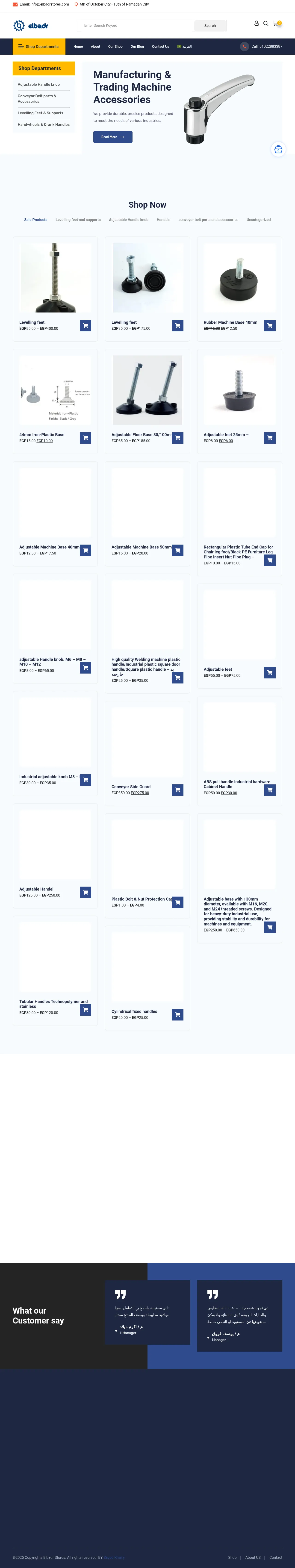 El Badr Company for Manufacturing and Trading Machine Accessories specializes in the production and supply of high-quality industrial components for the Egyptian manufacturing sector. Their product portfolio includes a wide range of leveling feet, machine bases, industrial handles, and conveyor system accessories designed for durability and precision. The company serves various industrial applications, focusing on delivering reliable hardware that meets rigorous performance standards. They are recognized for their commitment to providing consistent product quality and timely order fulfillment. By emphasizing innovation and material durability, they support the stability and operational efficiency of industrial machinery across multiple industries.