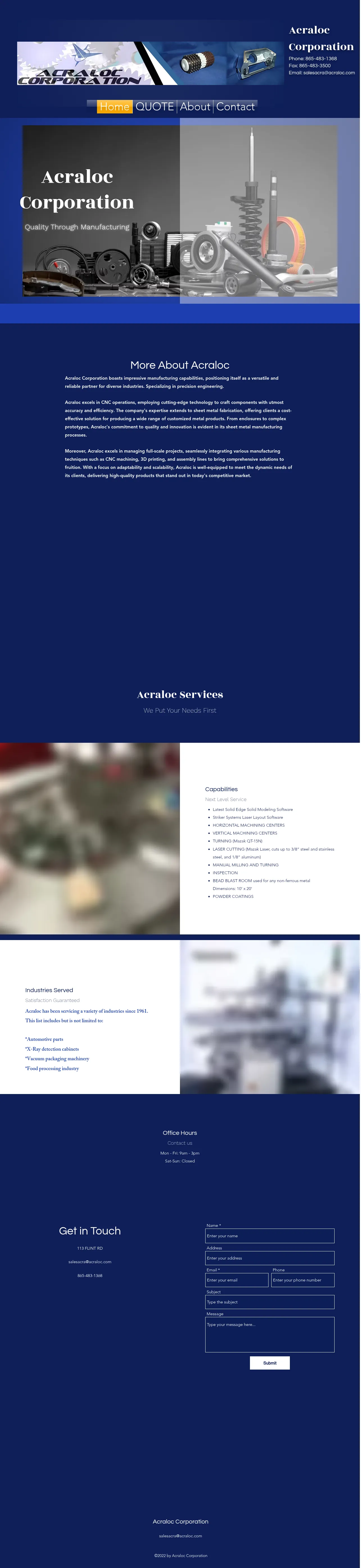 Acraloc Corporation is a versatile precision manufacturer operating since 1961 from its facility in Oak Ridge, Tennessee. The company provides comprehensive services including CNC machining, sheet metal fabrication, 3D printing, and complex assembly projects. They serve a diverse client base across industries such as automotive, food processing, vacuum packaging, and X-ray detection. By integrating advanced design software with modern production technology, the company offers scalable solutions for custom components and prototypes. Their facility emphasizes quality control and efficient production processes to meet specific industrial requirements.